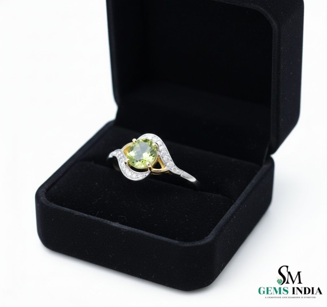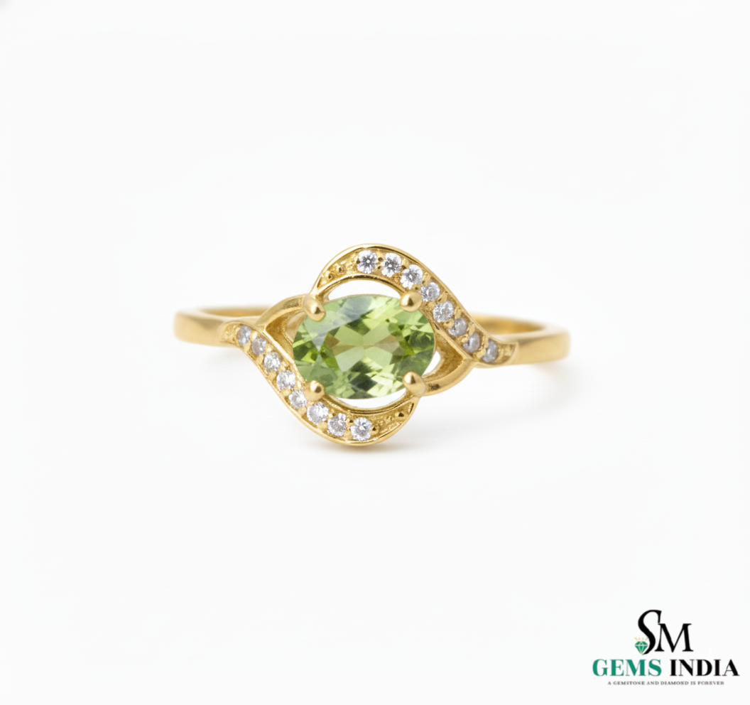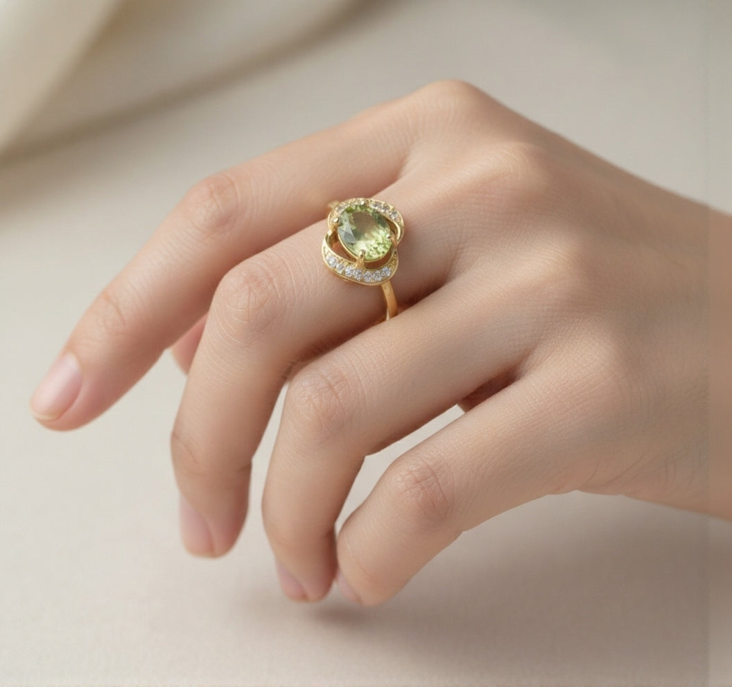 Peridot & Diamond Wave Ring – Elegant Gemstone Statement Ring
