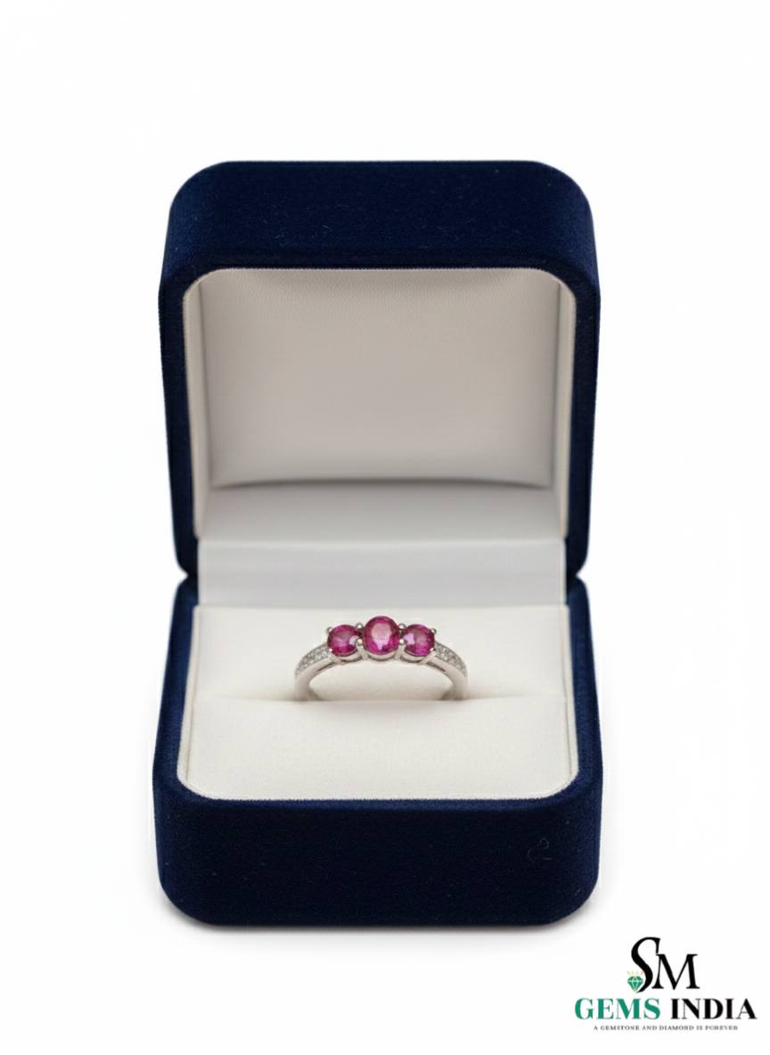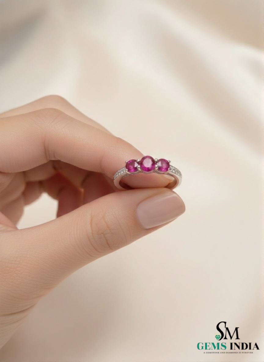Minimalist Round Natural Ruby Three-Stone Diamond Ring Fine Jewelry Gift