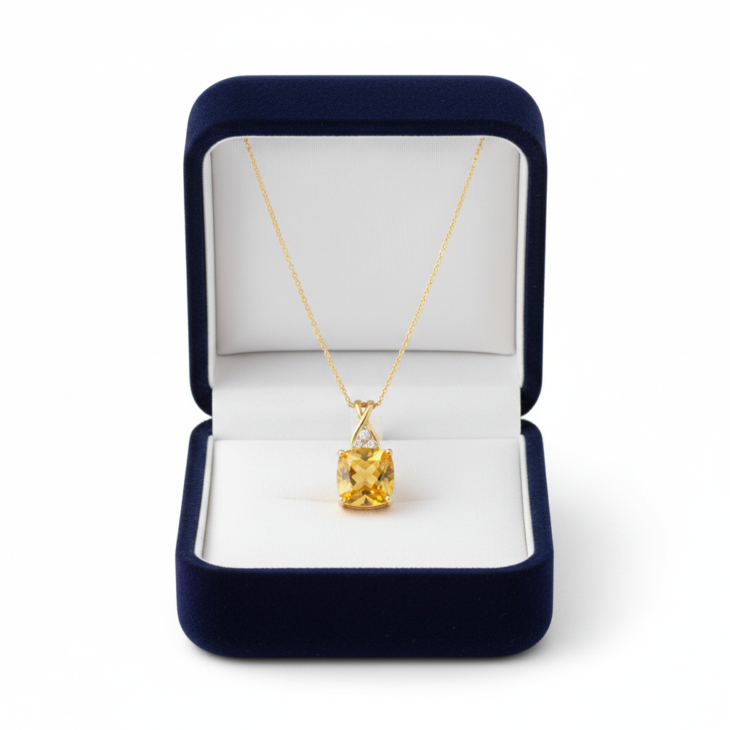 Cushion Cut Fine Gemstone Pendant with Diamond Accent – Elegant Minimal Jewelry