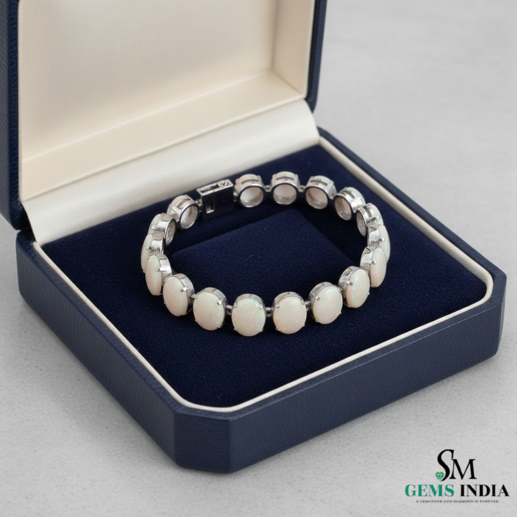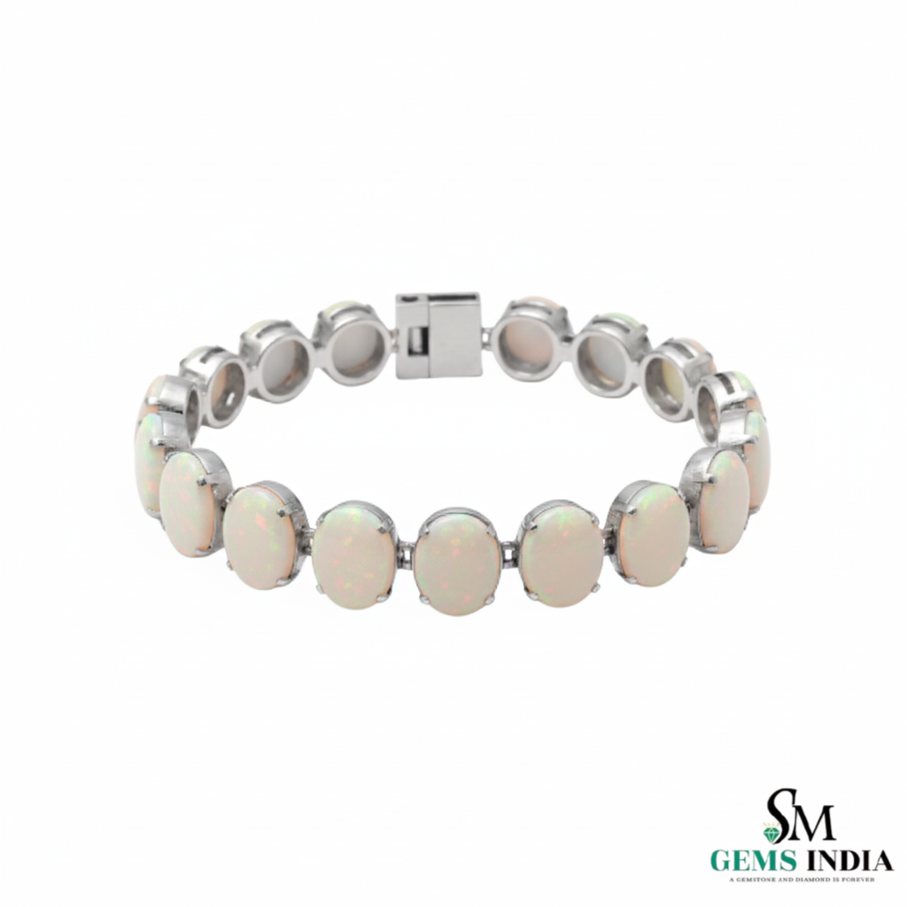 Luxury Natural Oval Opal Tennis Bracelet – Elegant Gemstone Jewelry