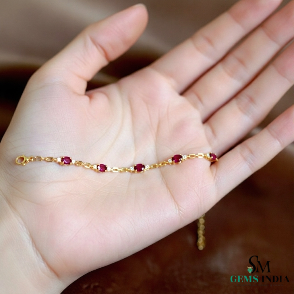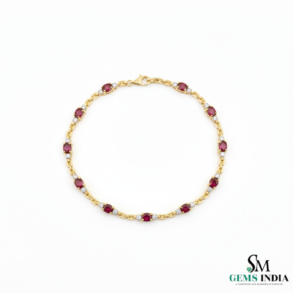 Oval Ruby & Diamond Bracelet in 18k Gold Classic Gold Fine Jewelry