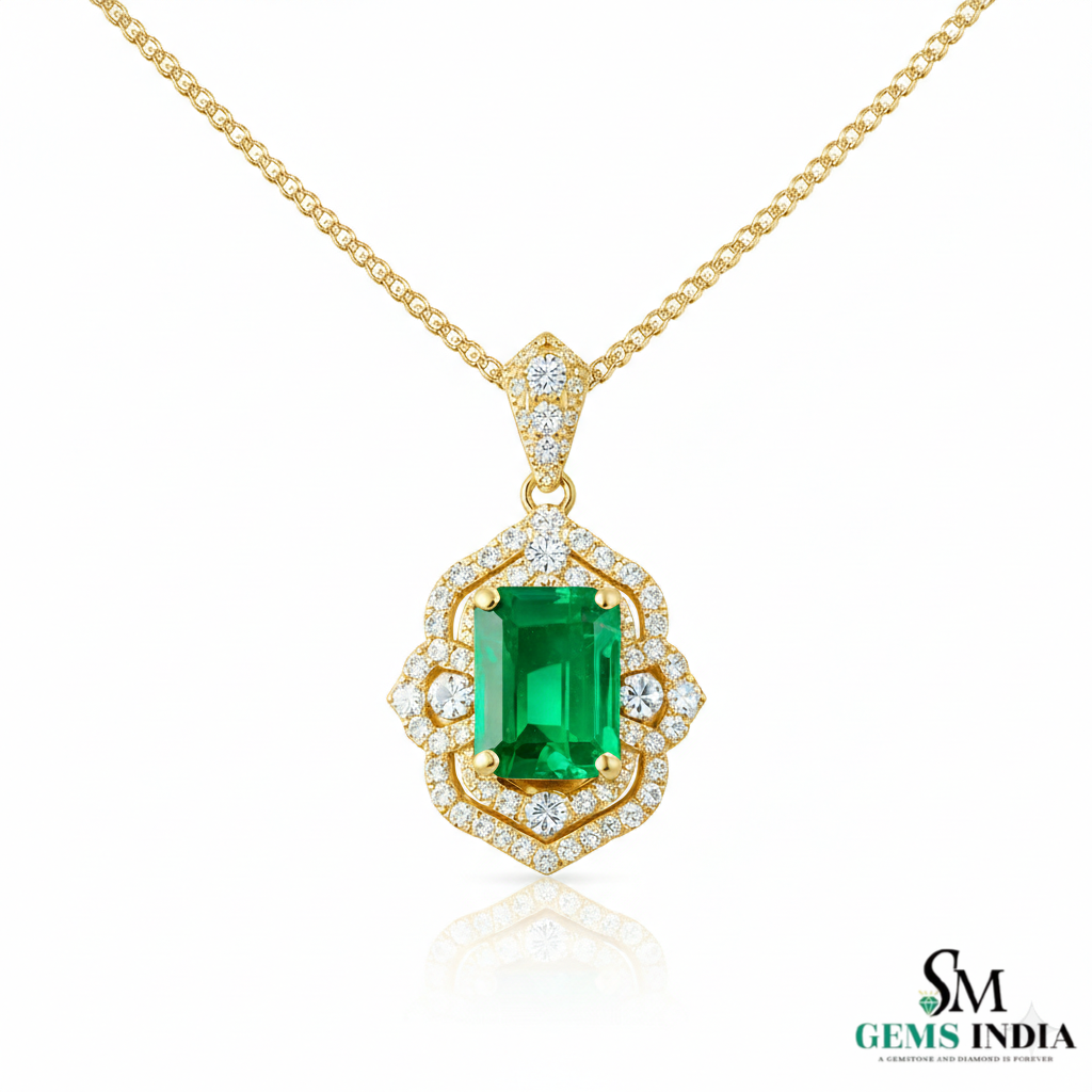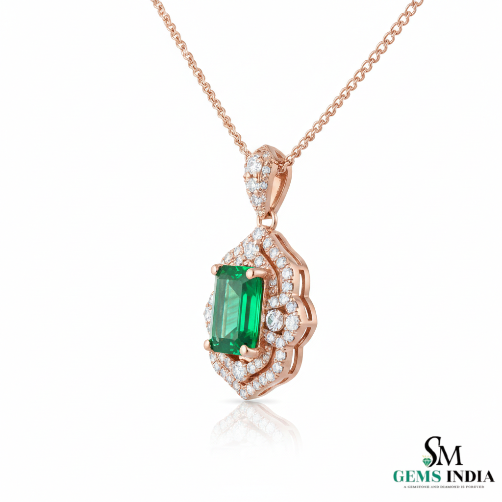 Emerald Cut Emerald Diamond Vintage Style Halo Pendant