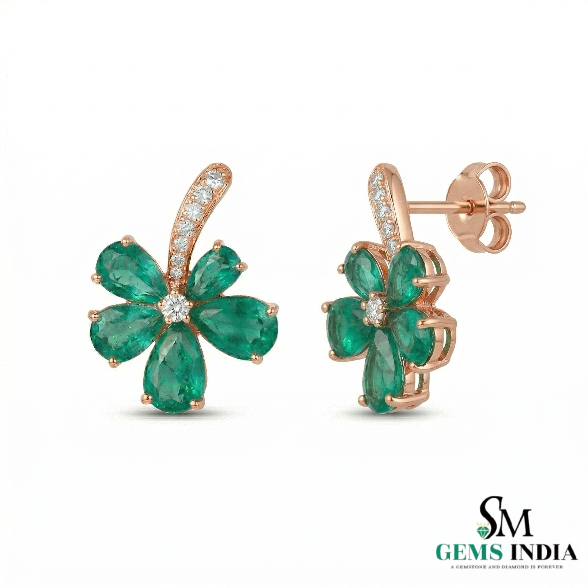 Natural Emerald Pear Cut Floral Earrings – Diamond Center Gold Studs