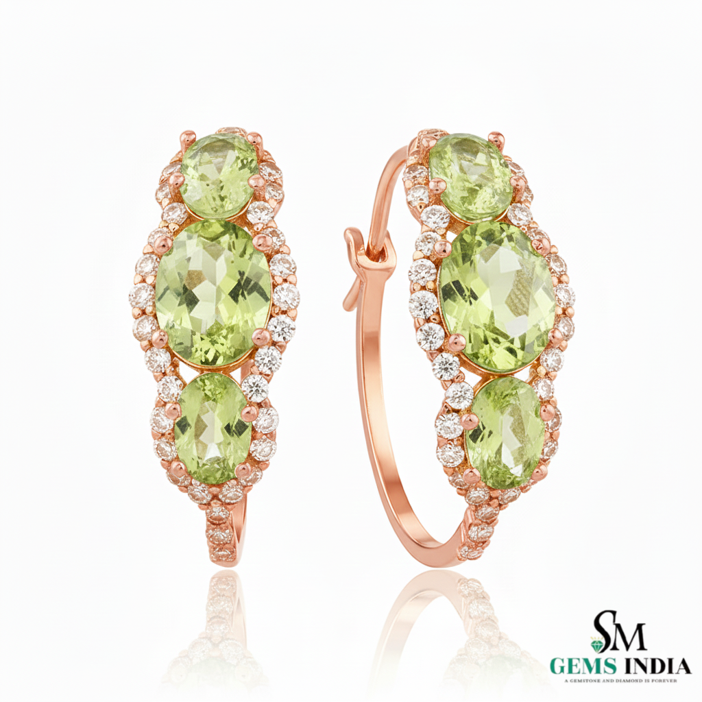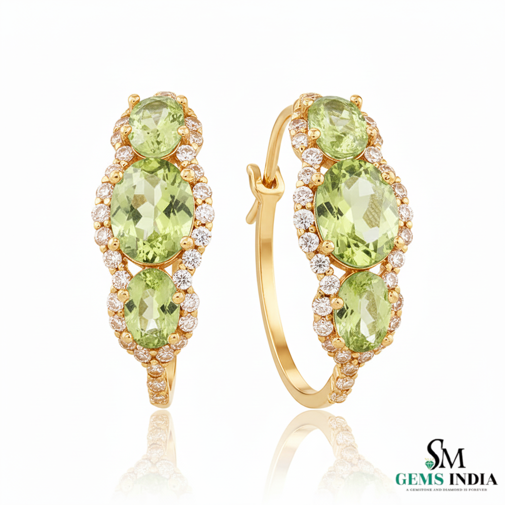 Elegant Oval Peridot & Diamond in 14k and 18kGold Hoop Earrings