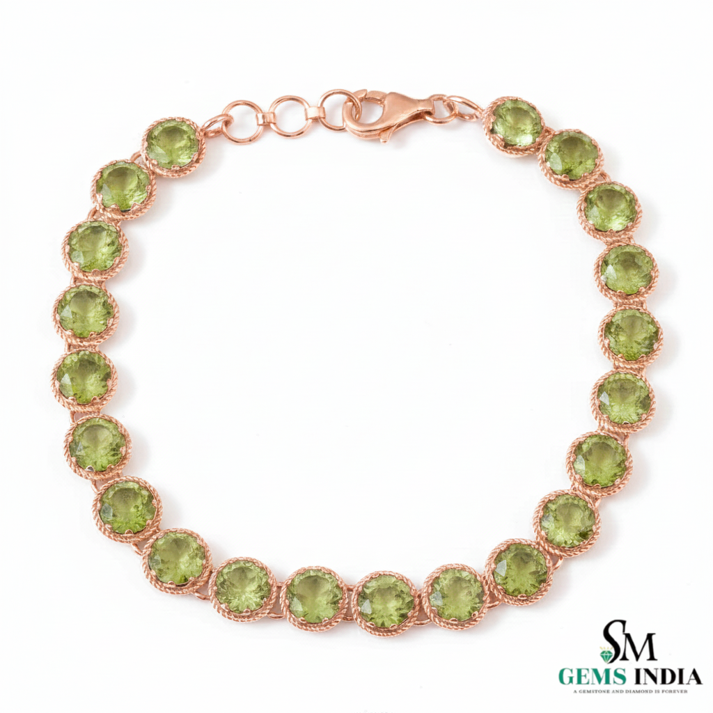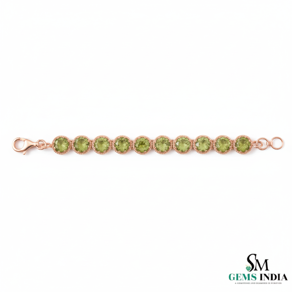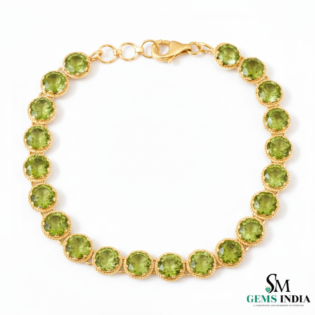 Classic Round Green Gemstone Link Bracelet - Bezel Style Tennis Bracelet