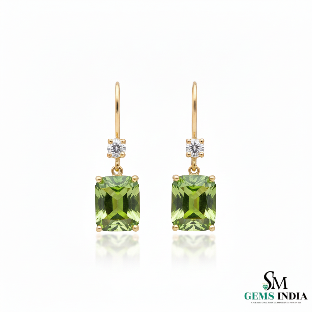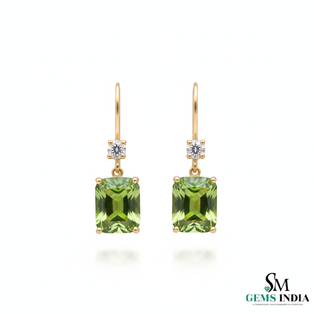Emerald Cut Natural Peridot Diamond Dangle Earrings - Fine Jewelry Earrings