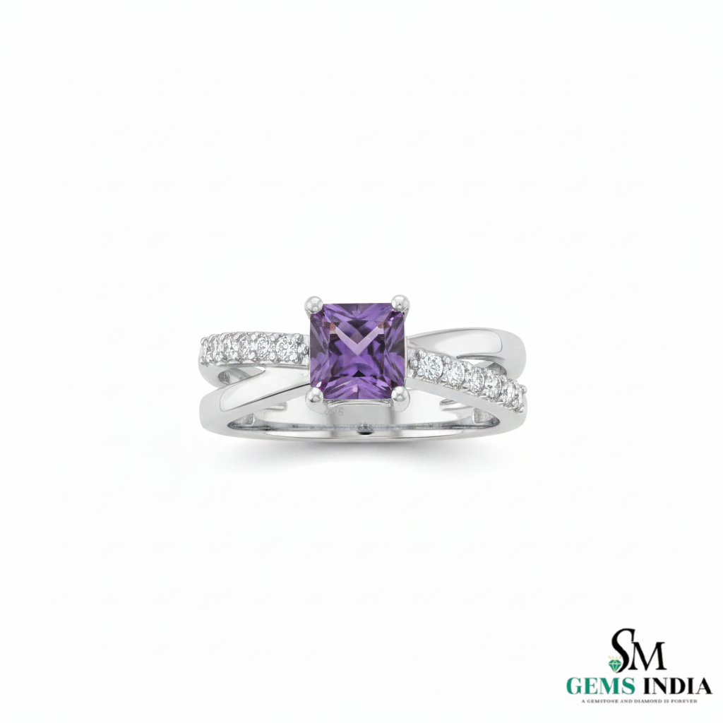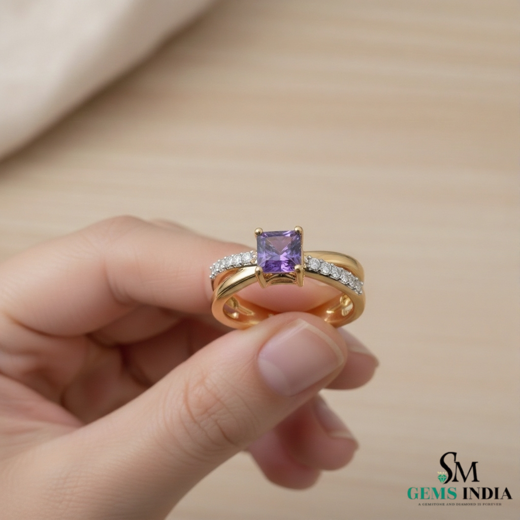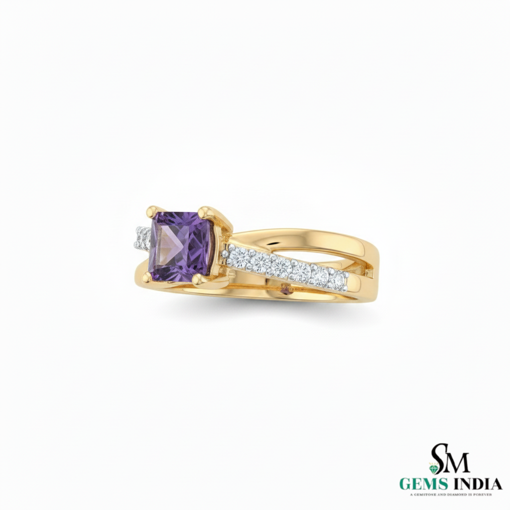 Elegant Princess Cut Amethyst Diamond Ring in 14k and 18k Gold Fine Gold Jewelry