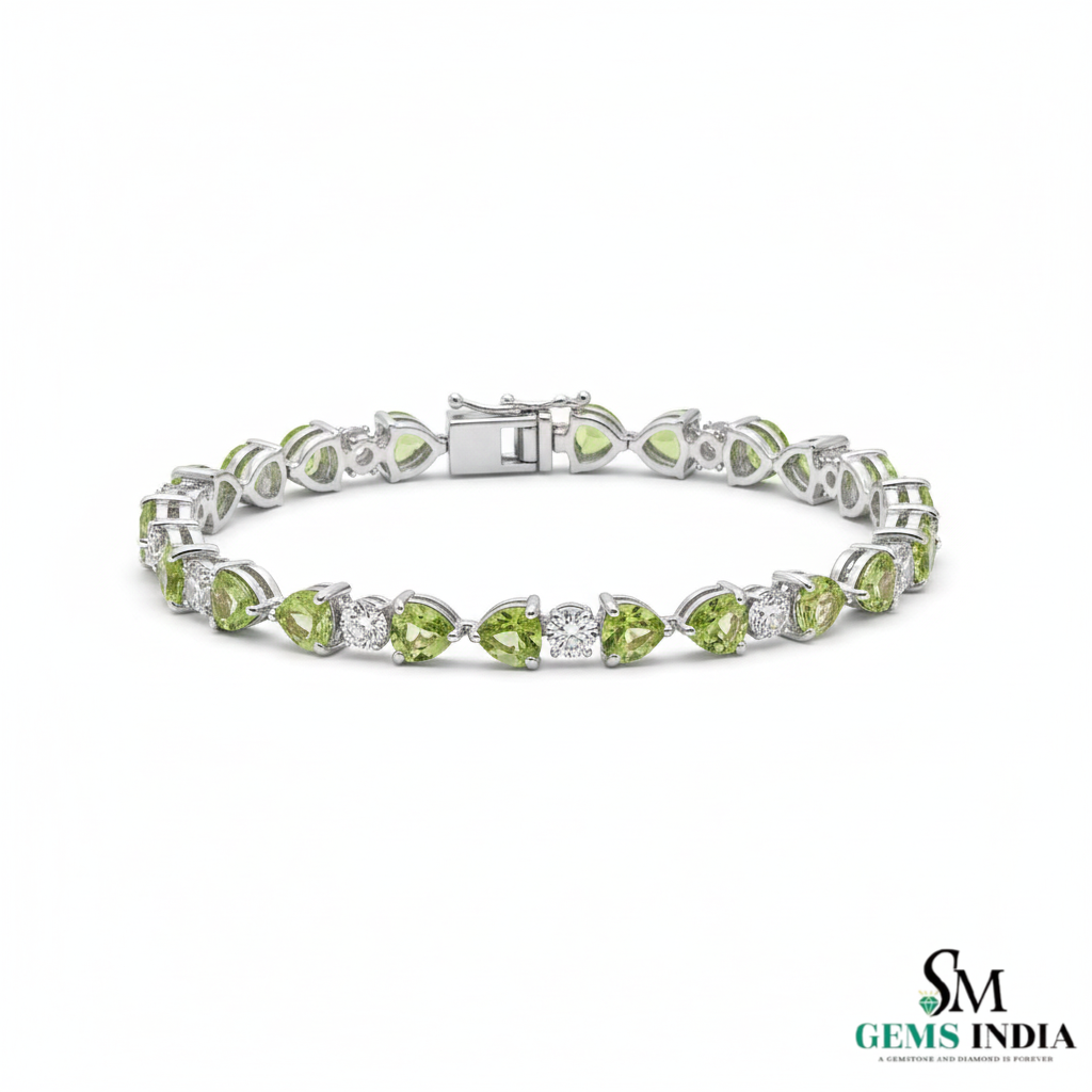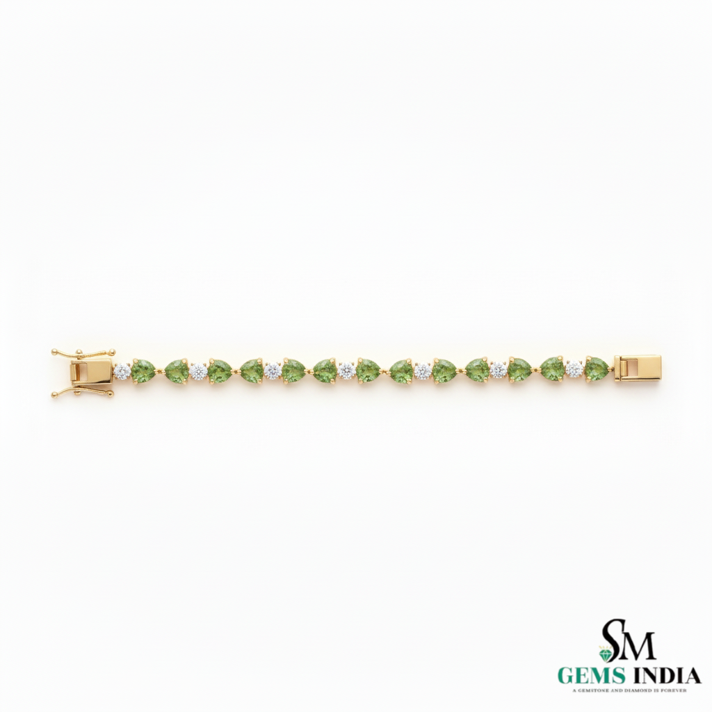 Green Heart Cut Gemstone & Diamond Gold Tennis Bracelet - Heart Jewelry