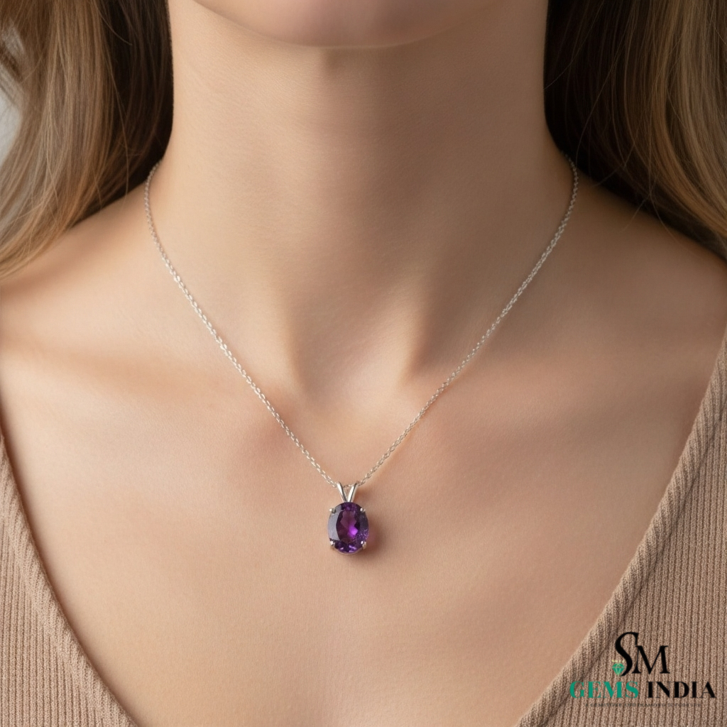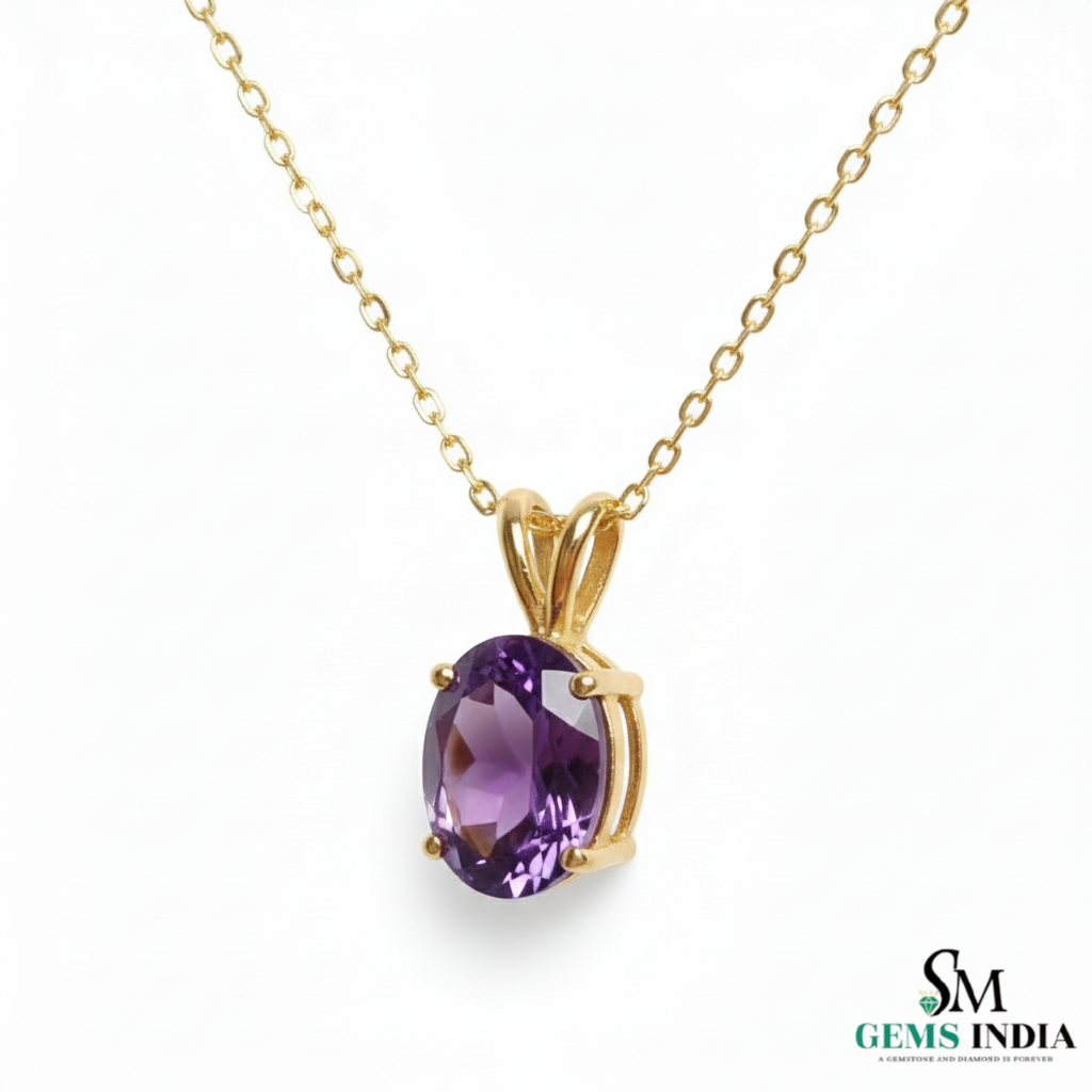Luxury Oval Amethyst Gemstone Pendant in 14k and 18k Gold