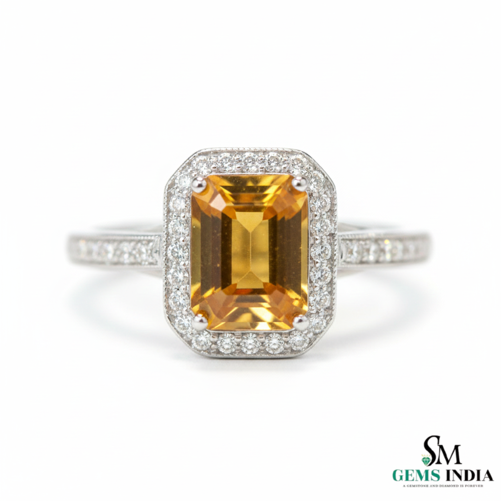 Elegant Emerald Cut Citrine Halo Ring for Women - November birthstone ring