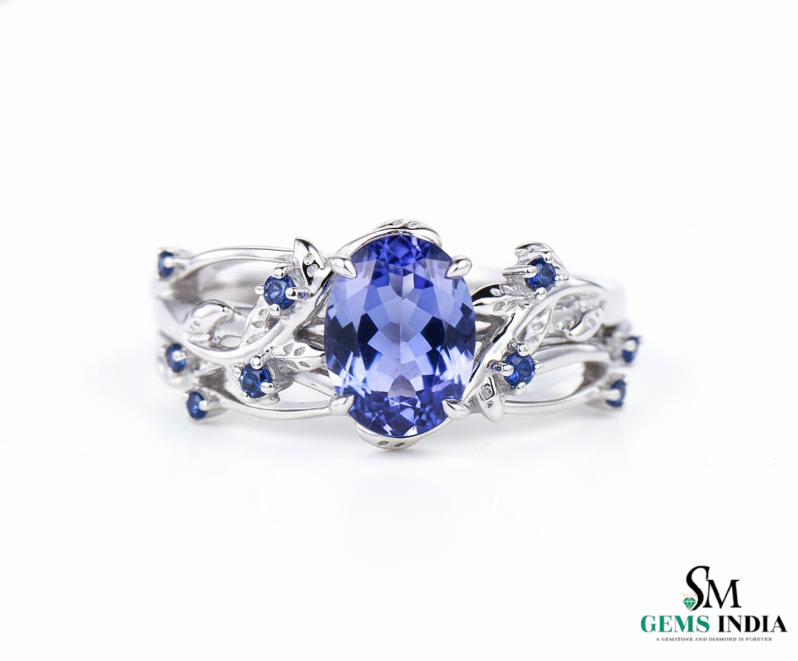 Oval Cut and Round Spiral Tanzanite Ring  –  Nature-Inspired Ring