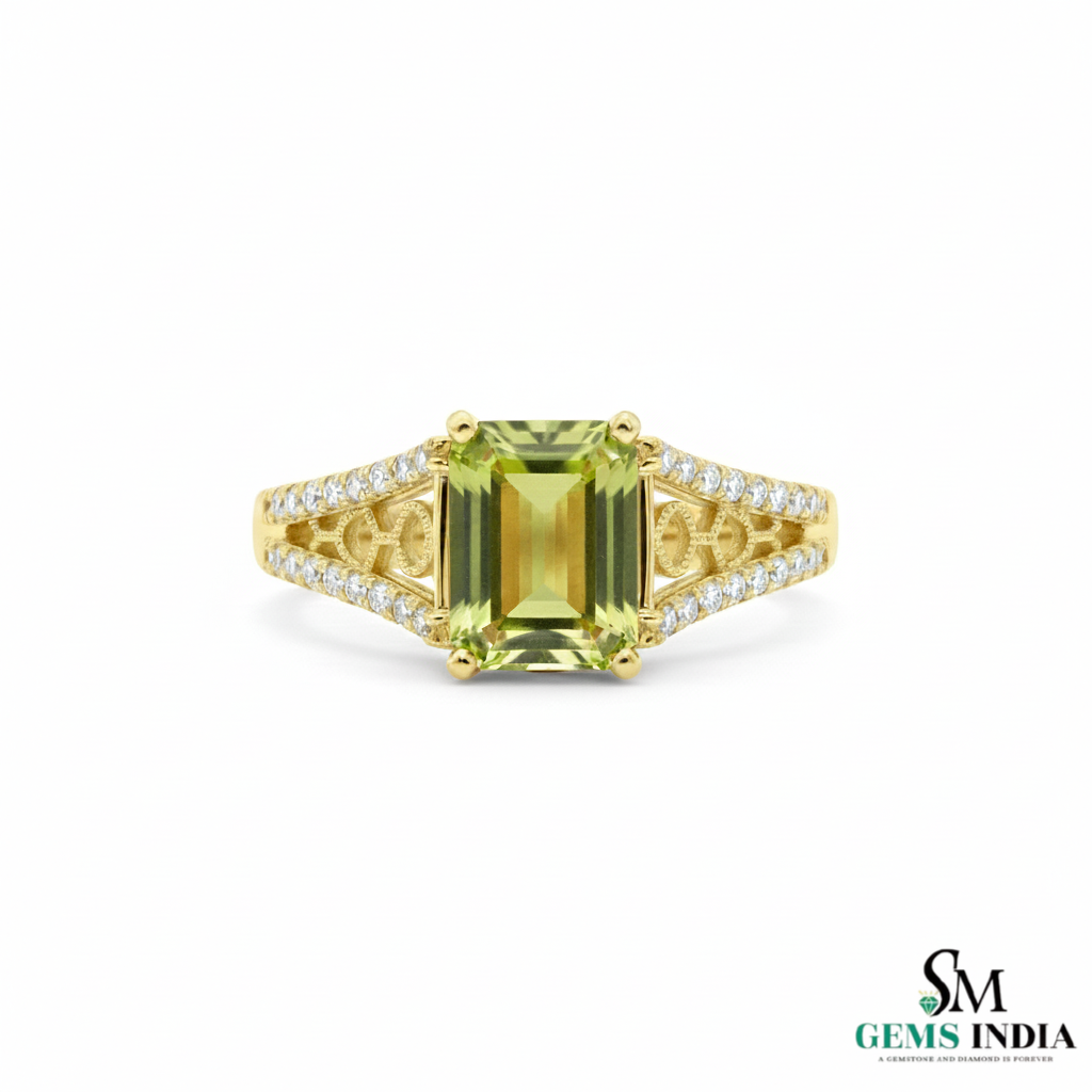 Natural Green Peridot & Diamond Ring – Emerald Cut in 14k and 18k Gold