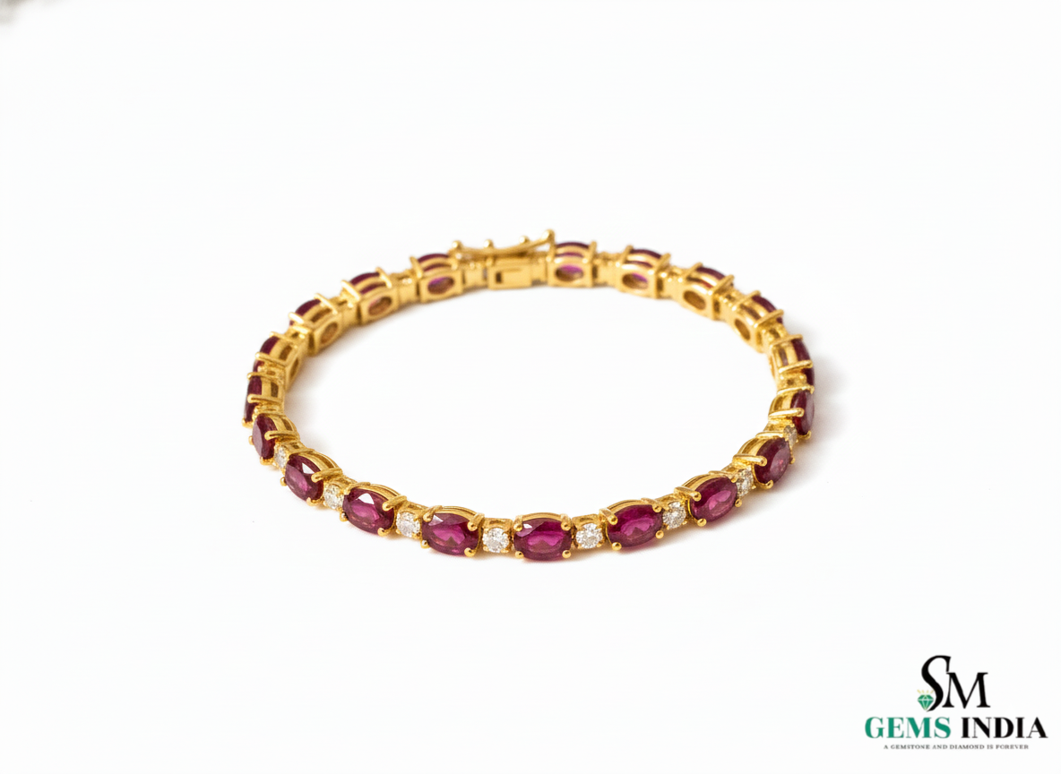 Elegant Oval shape Natural Ruby Bracelet with Diamond Accents – Timeless Luxury