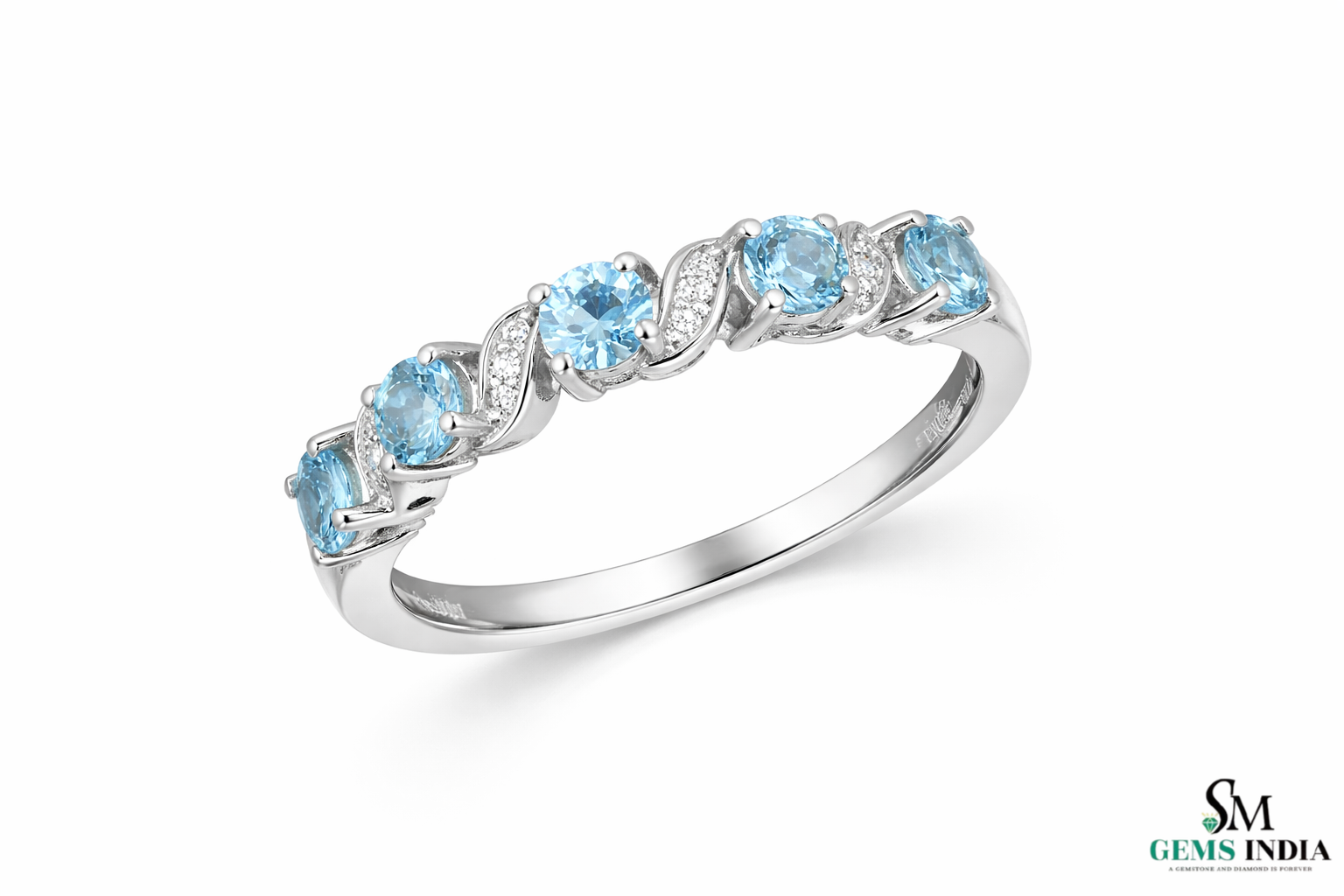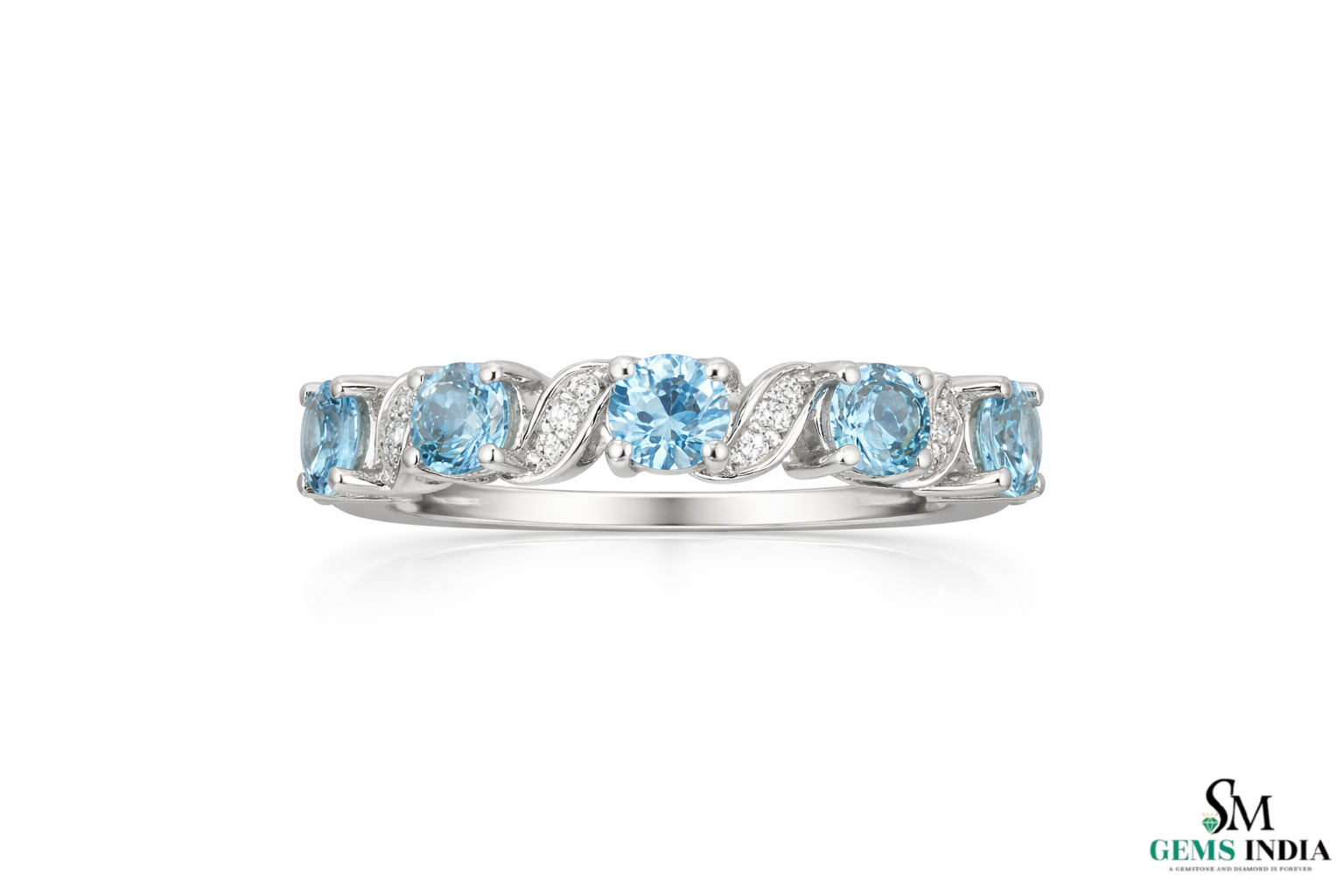 Luxury Aquamarine & Diamond Wave Band Ring - Diamond Twist Ring