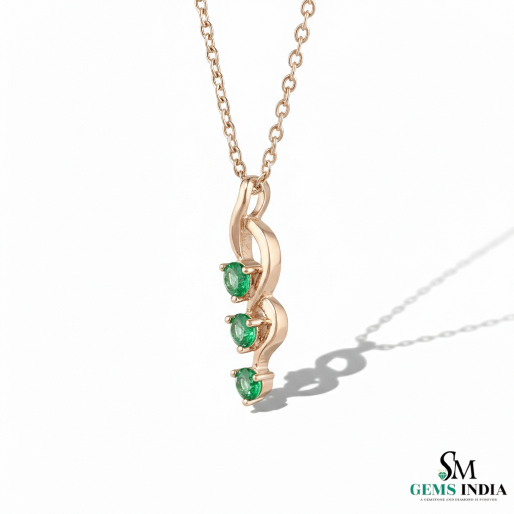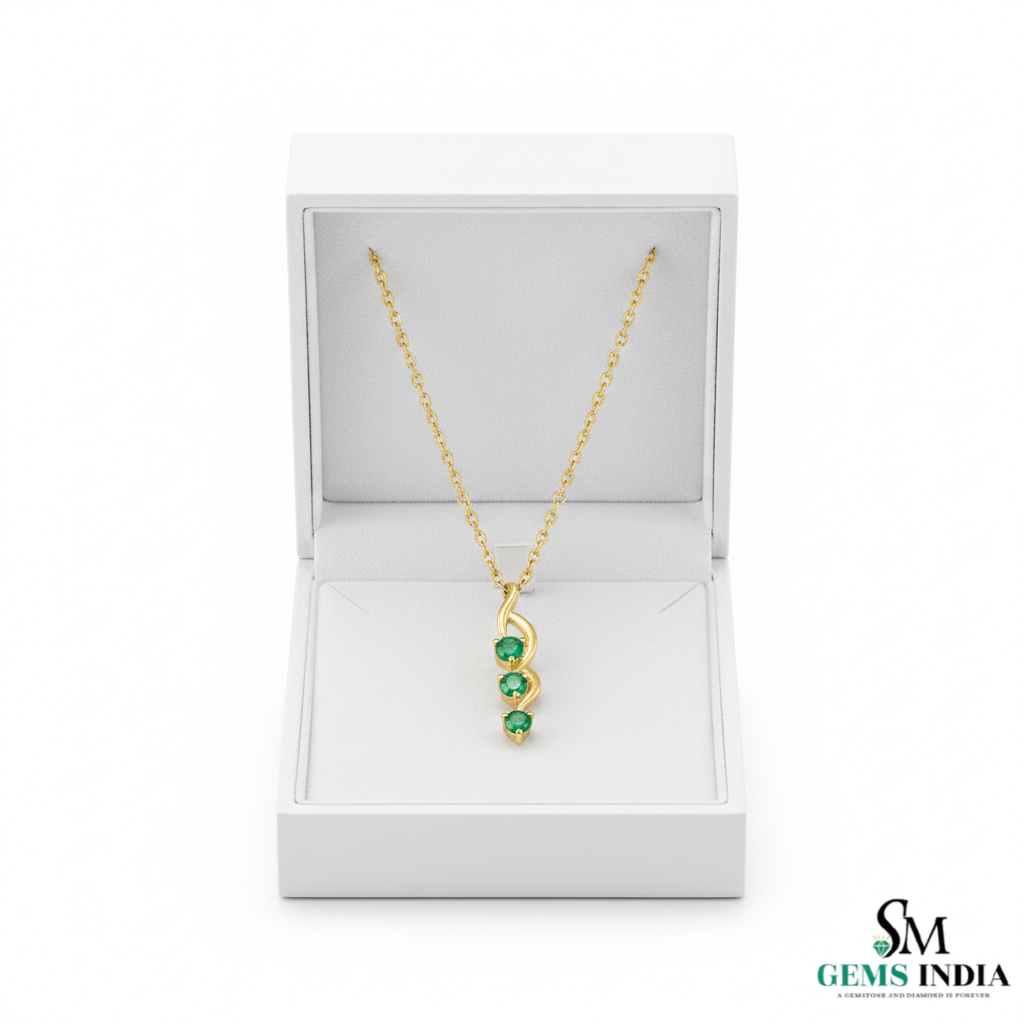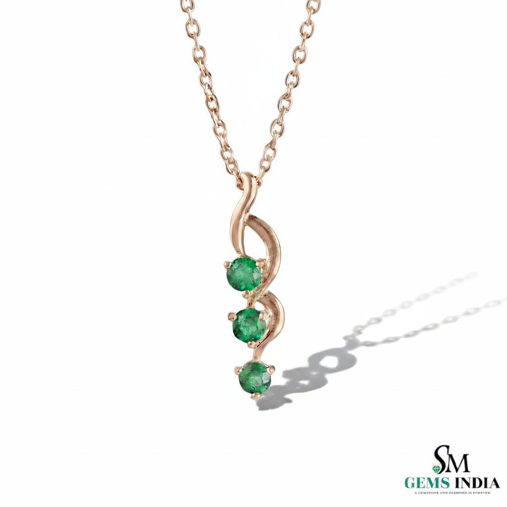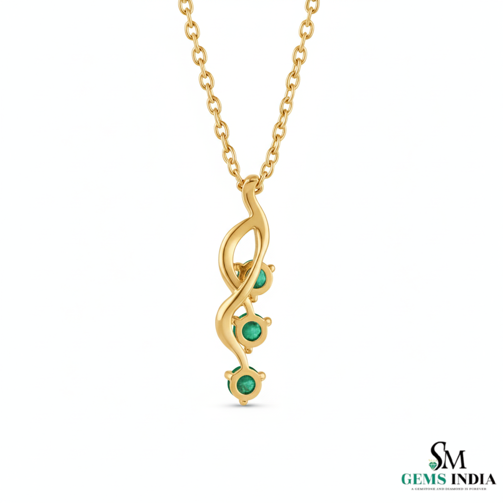 Three Stone Green Emerald Drop Twist Pendant - Halo Gemstone Pendant