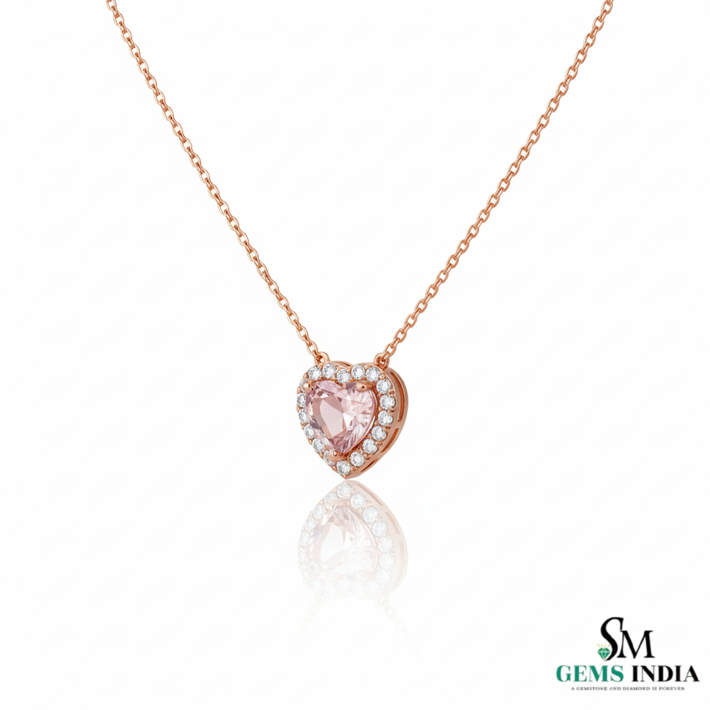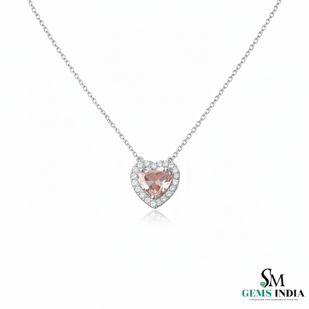 Heart Pink Morganite & Diamond Halo Pendant - wedding jewelry pendant