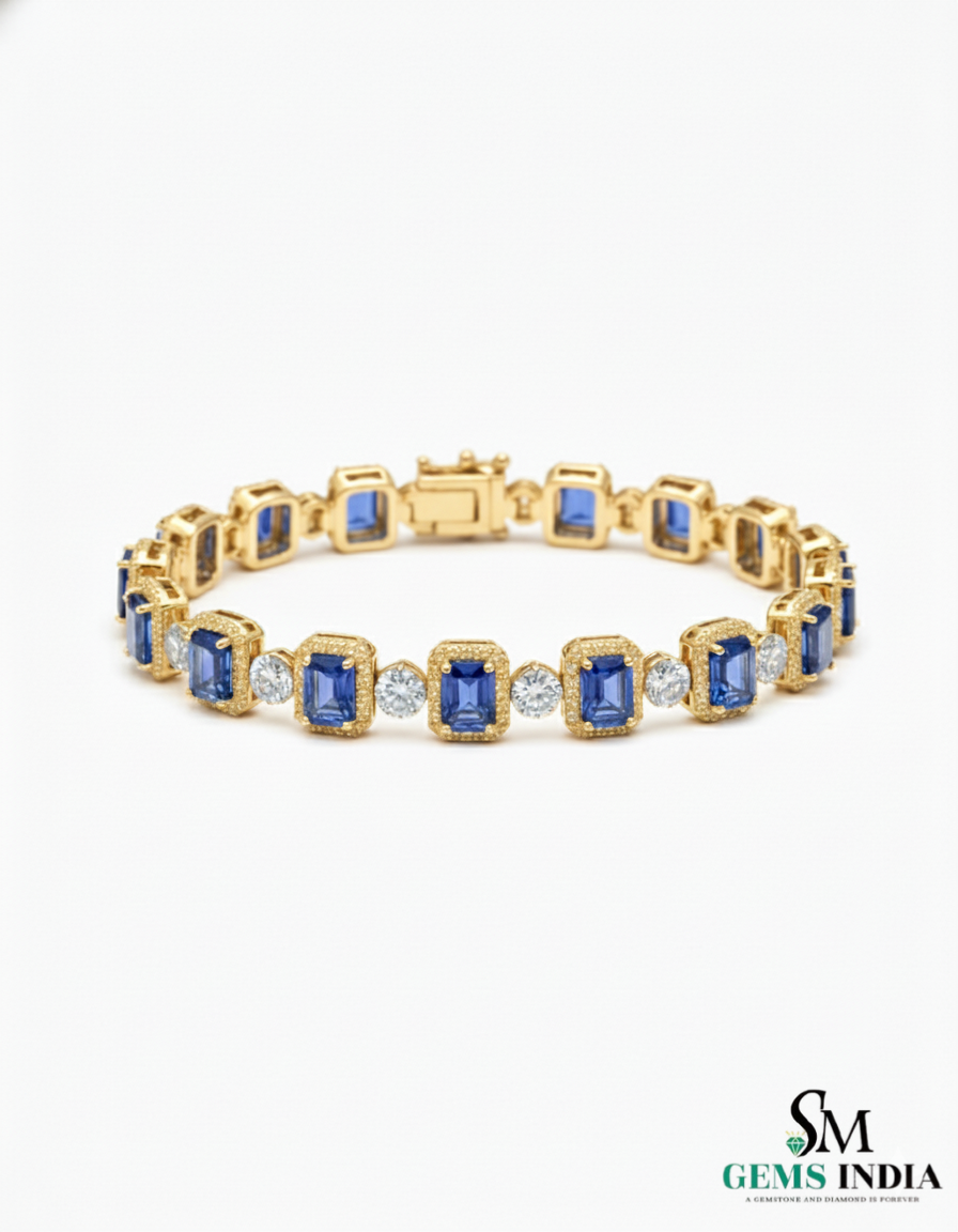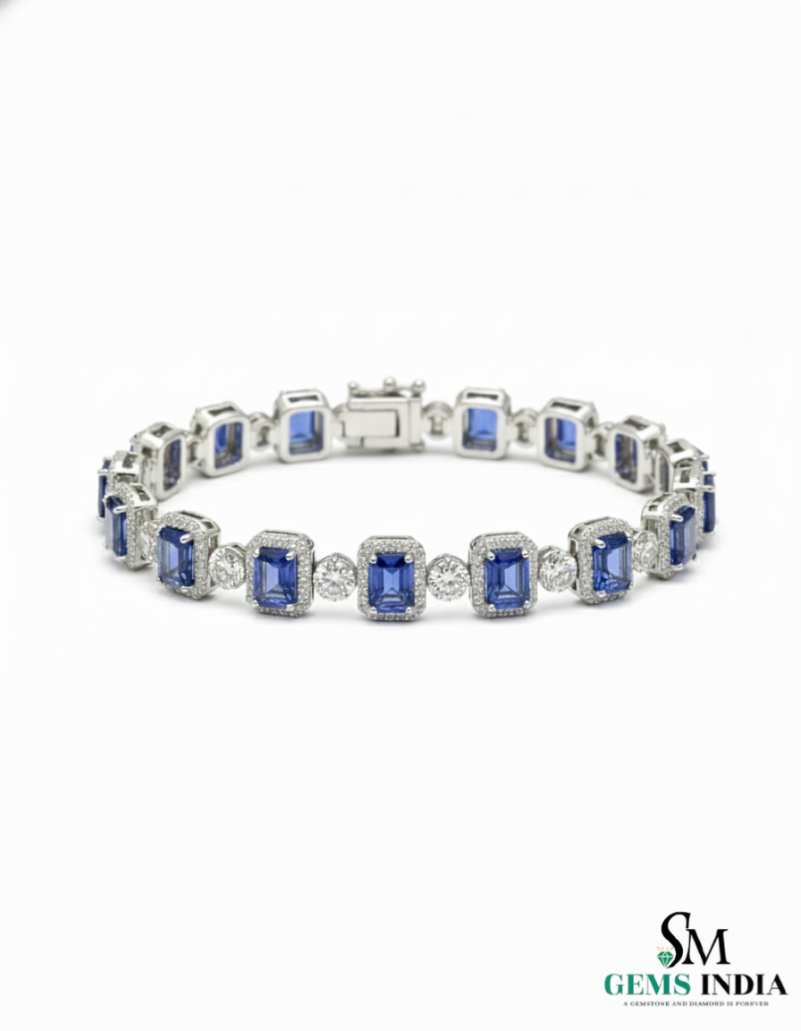 Elegant Emerald Cut Tanzanite Bracelet with Diamond Accents – Gift for Her