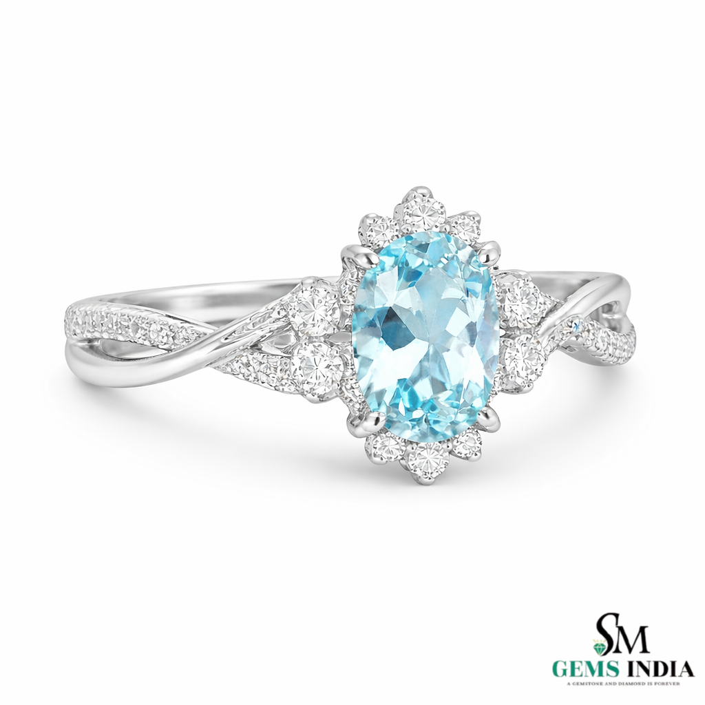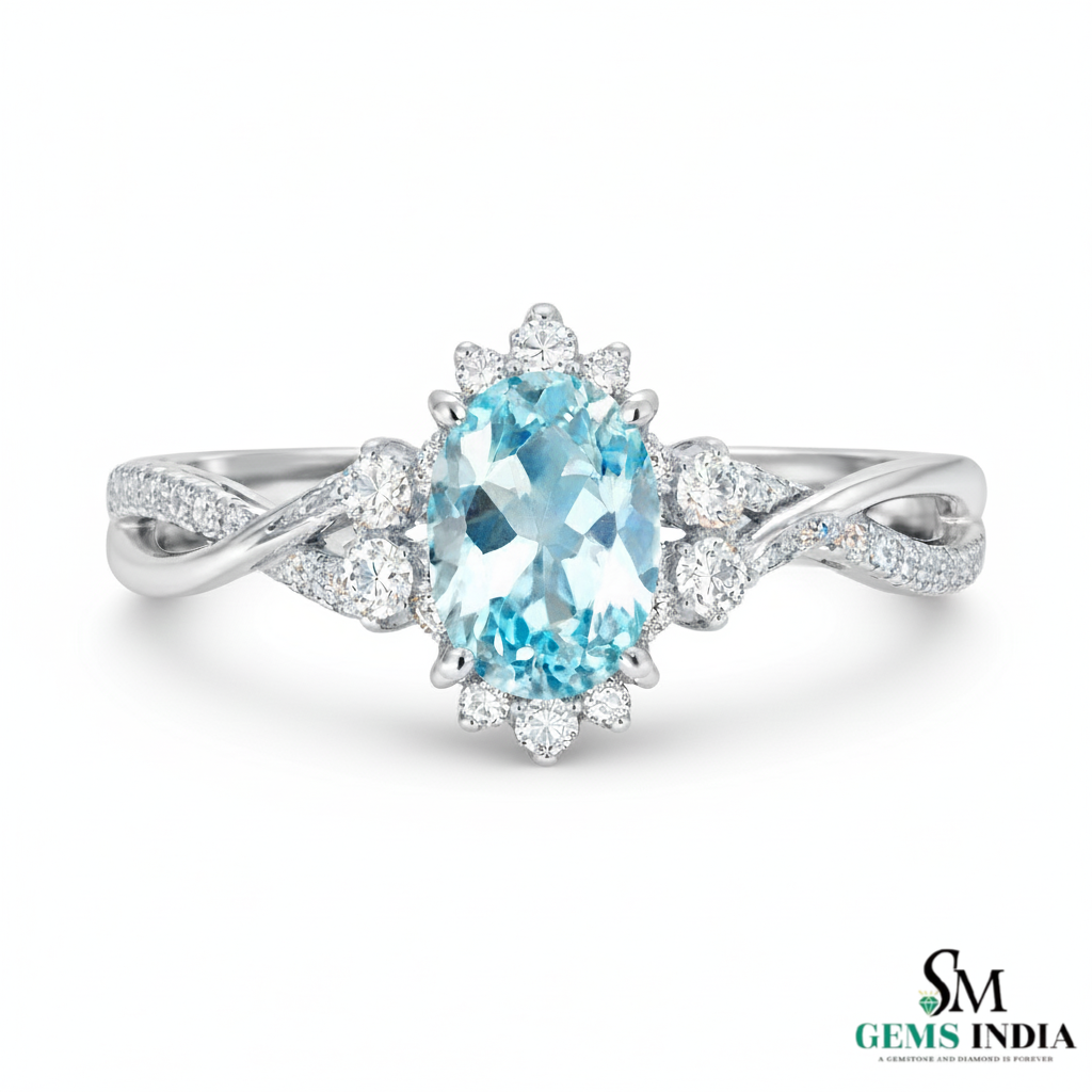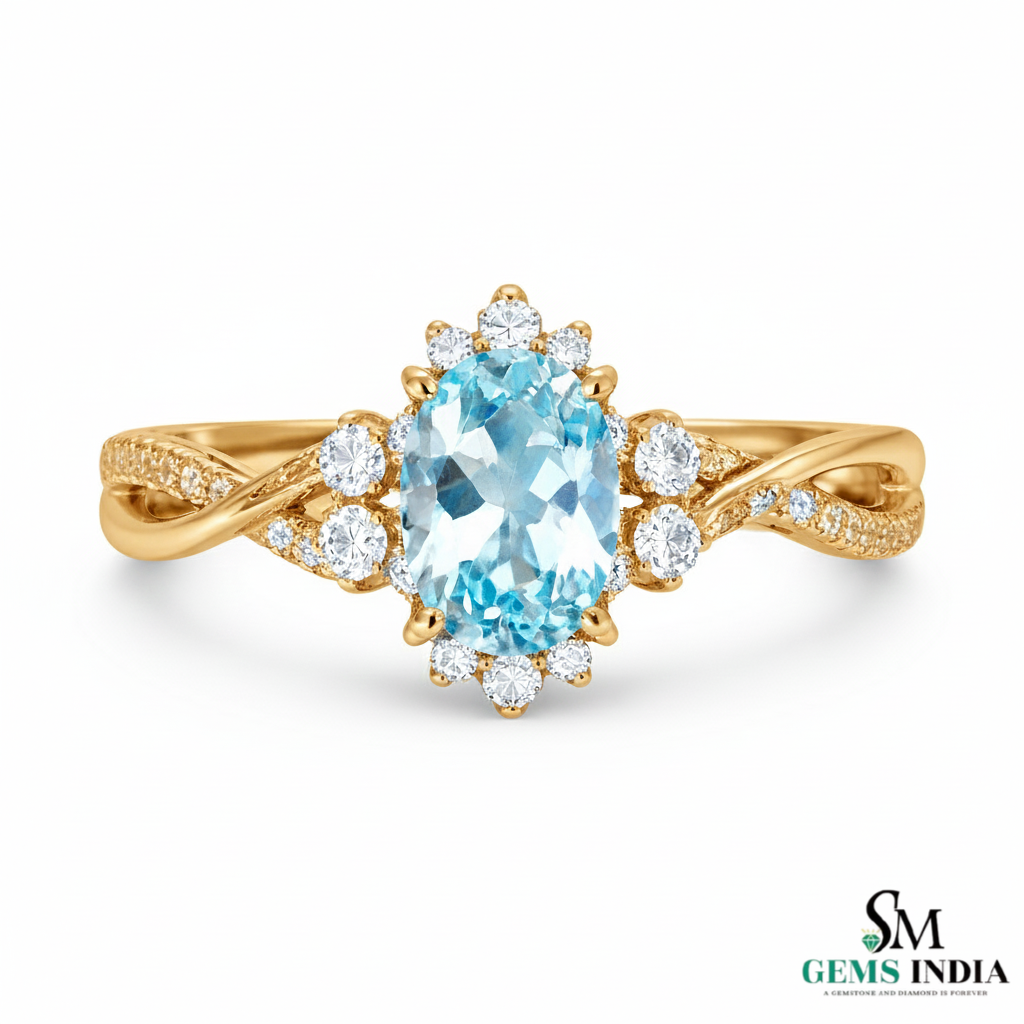 Natural Aquamarine Oval Diamond Ring - Twisted Gold Band
