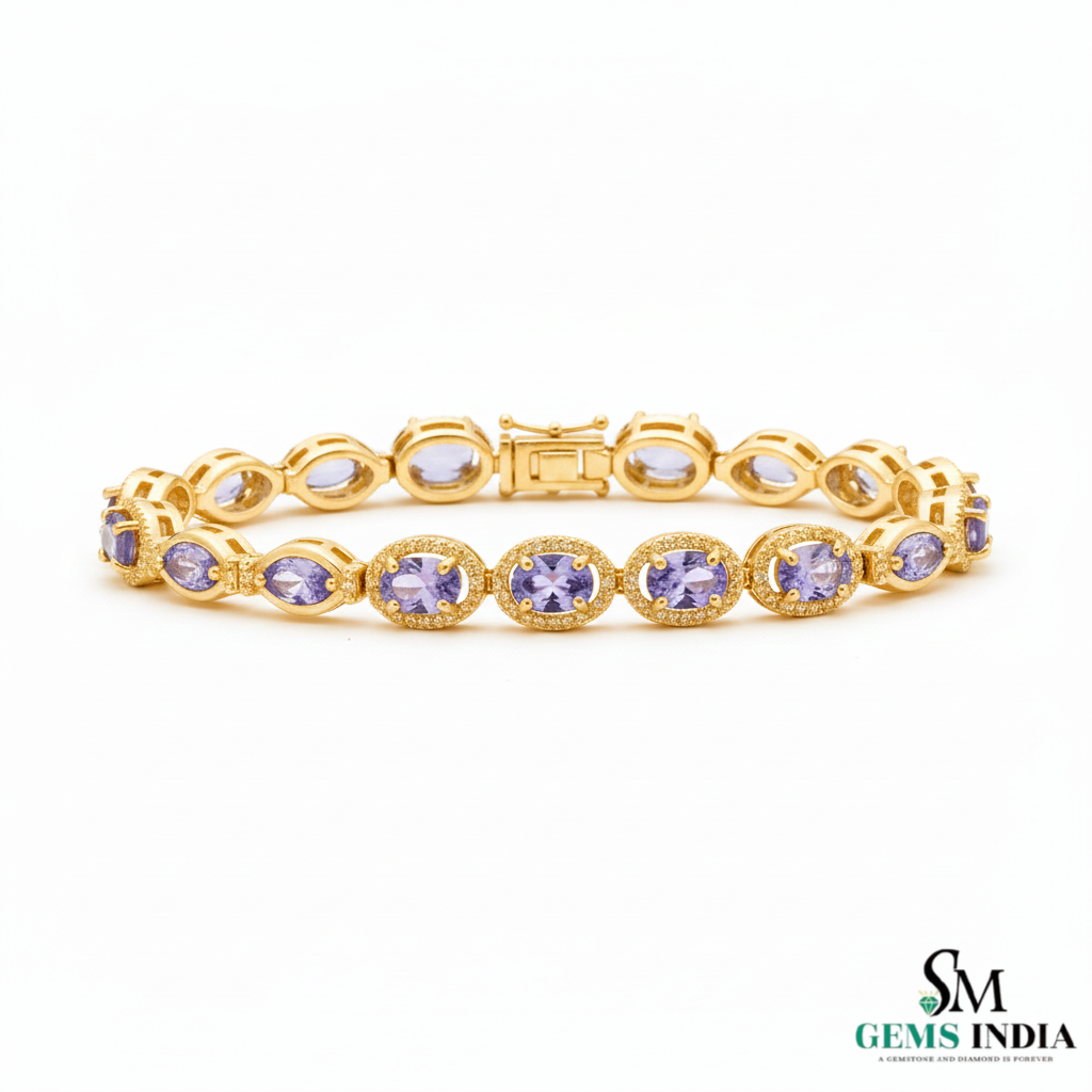 Natural Oval Tanzanite Diamond Bracelet – Halo Design