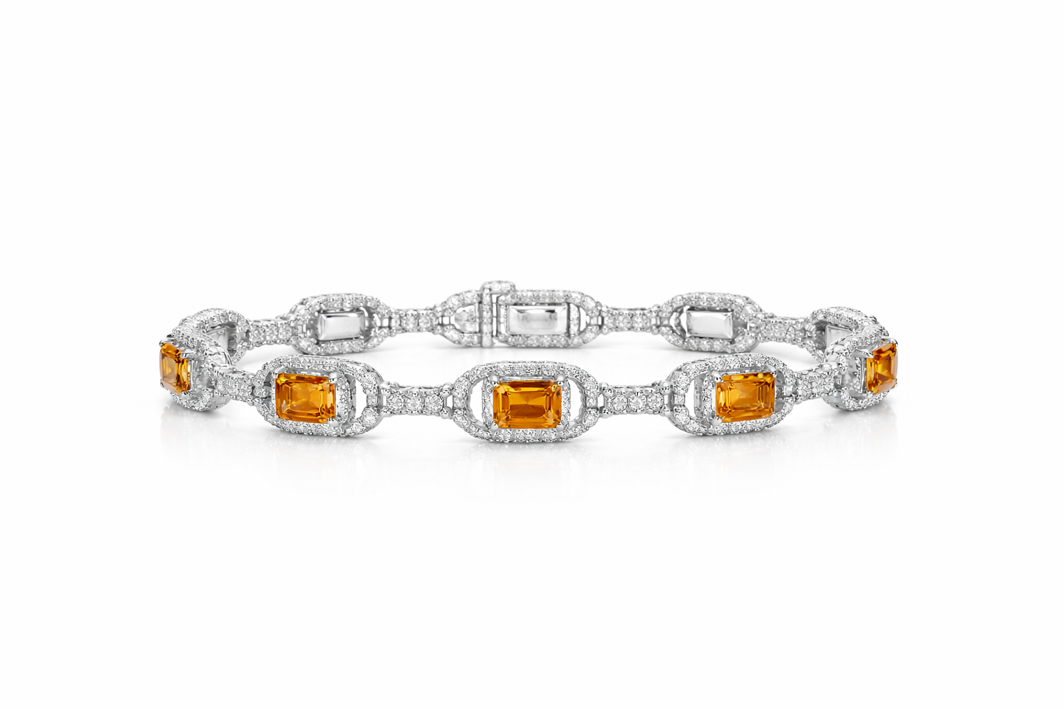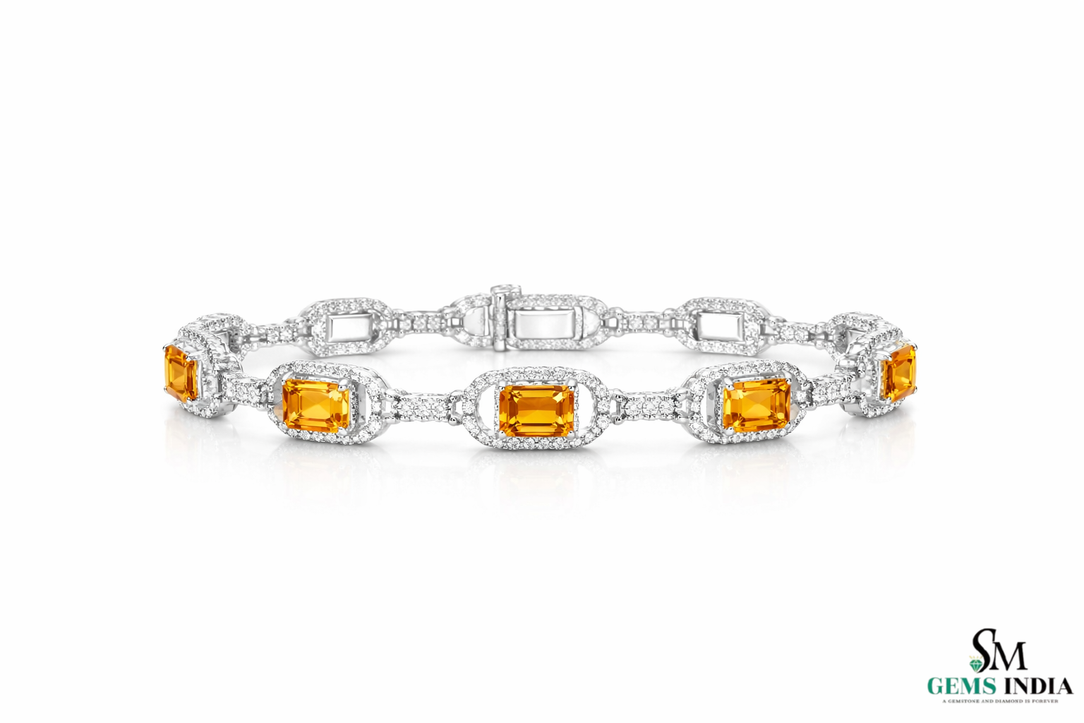 Elegant Emerald Cut Citrine Diamond Bracelet - Gift For Her