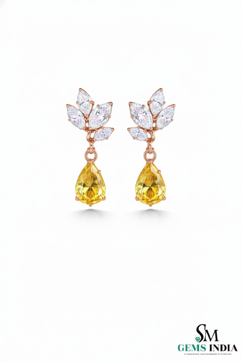 Pear Cut Yellow Citrine Drop Earrings with Leaf Moissanite - Elegant Gold Jewelry Gift