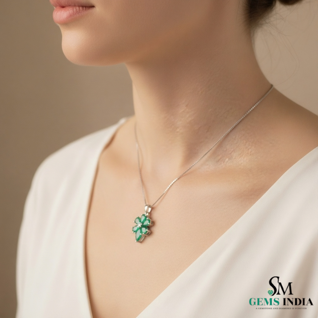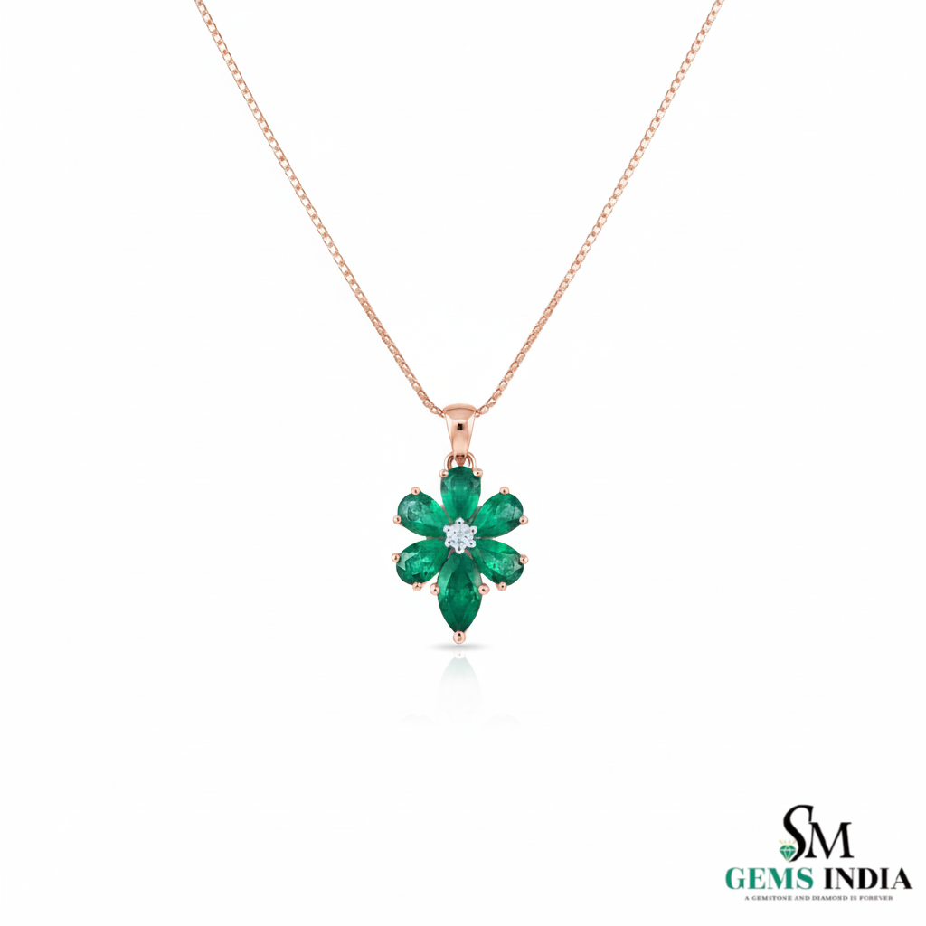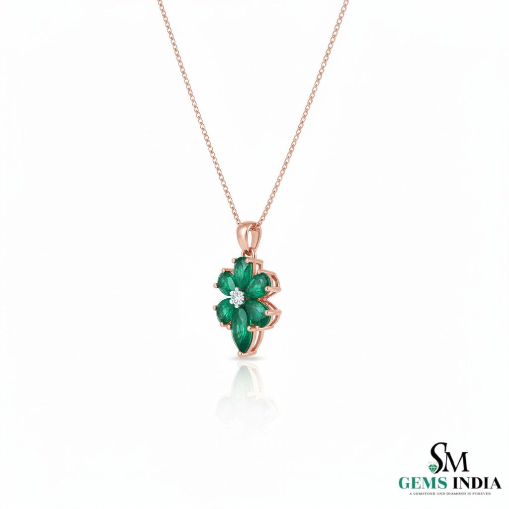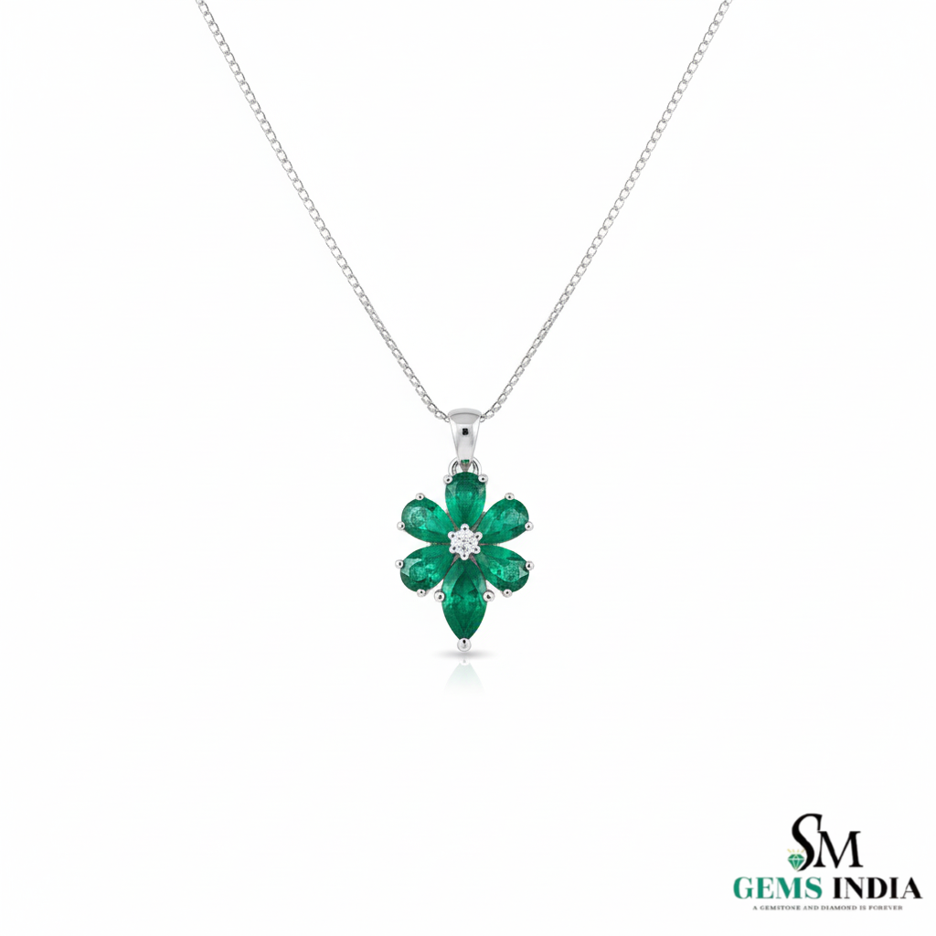 Pear and Marquise Natural Emerald Flower Pendant May Birthstone Jewelry