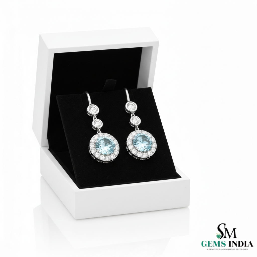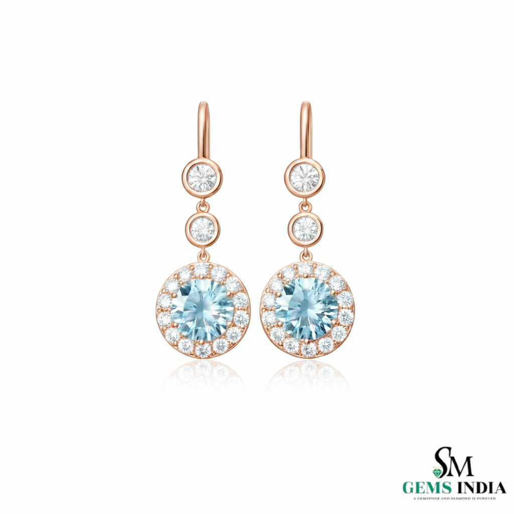 March Birthstone Round Aquamarine Diamond Drop Earrings – Fine Gold Jewelry