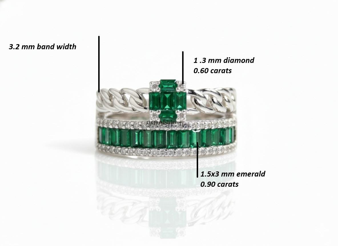 0.90 carat Natural Emerald Baguettes And Diamond Double chain Band Engagement Ring0.90 carat Natural Emerald Baguettes And Diamond Double chain Band Engagement Ring