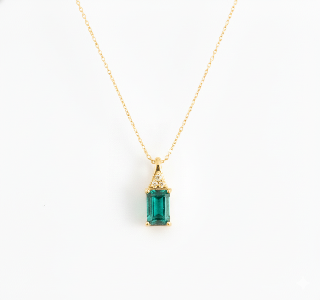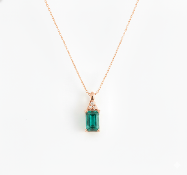 2.20 carat Emerald-Cut Natural Emerald Pendant Necklace in 14K Gold with Diamond Accents
