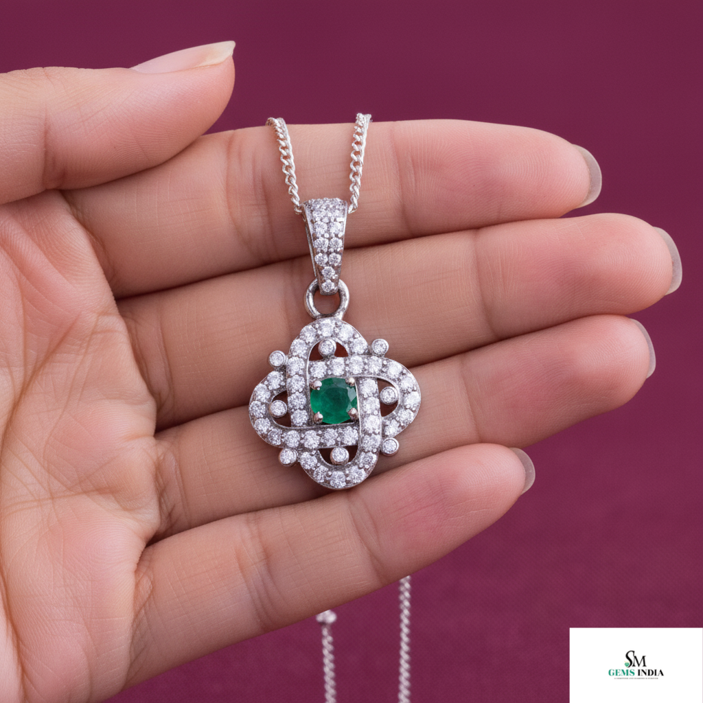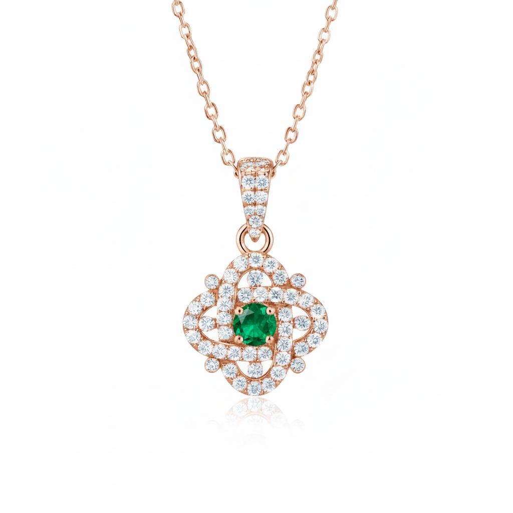 0.75 carat Round shaped Natural Emerald intertwined loops Cluster Pendant in 14k yellow gold