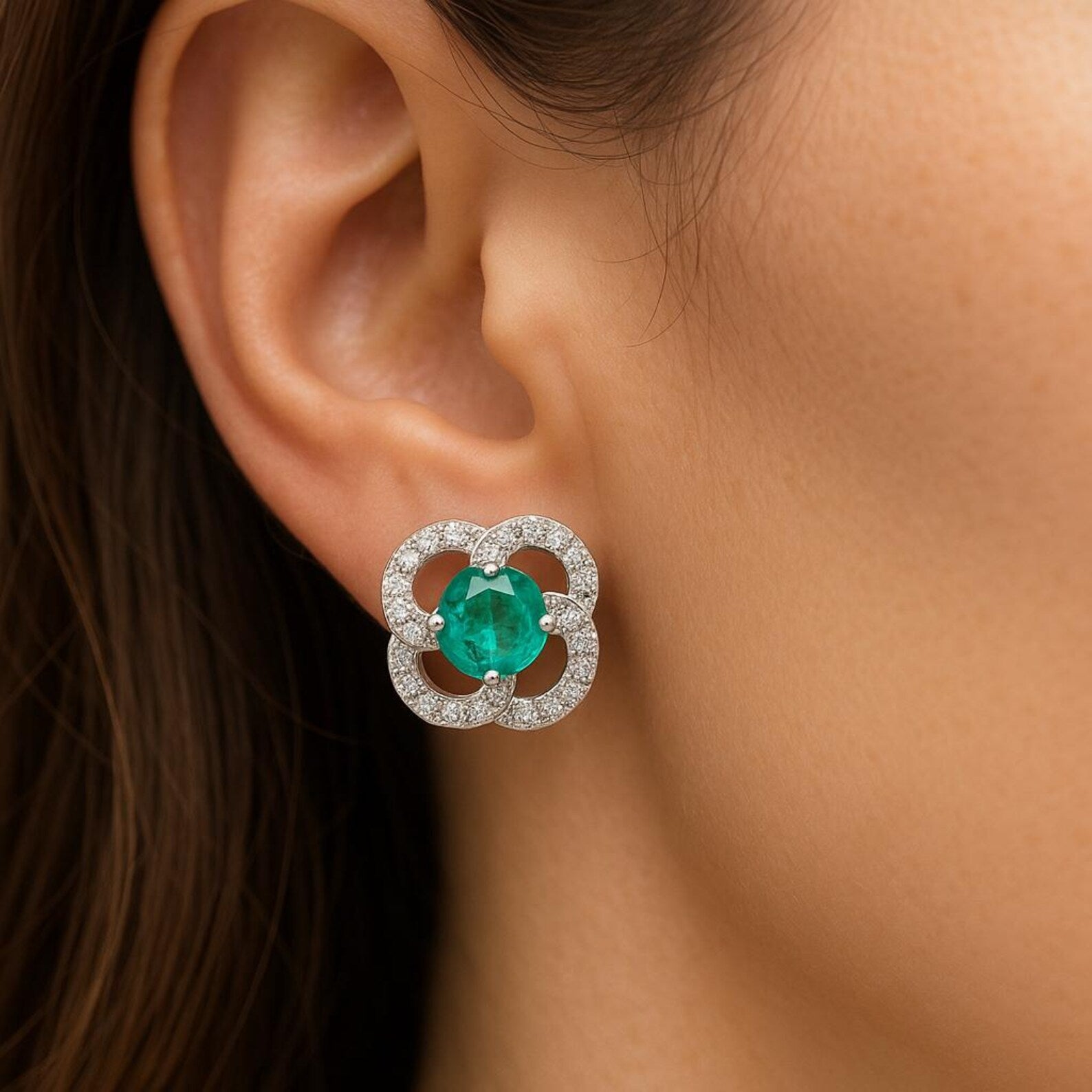 1.40 Carats Natural Emerald round shape Pair earrings for woman's in 14k solid gold Studs earrings
