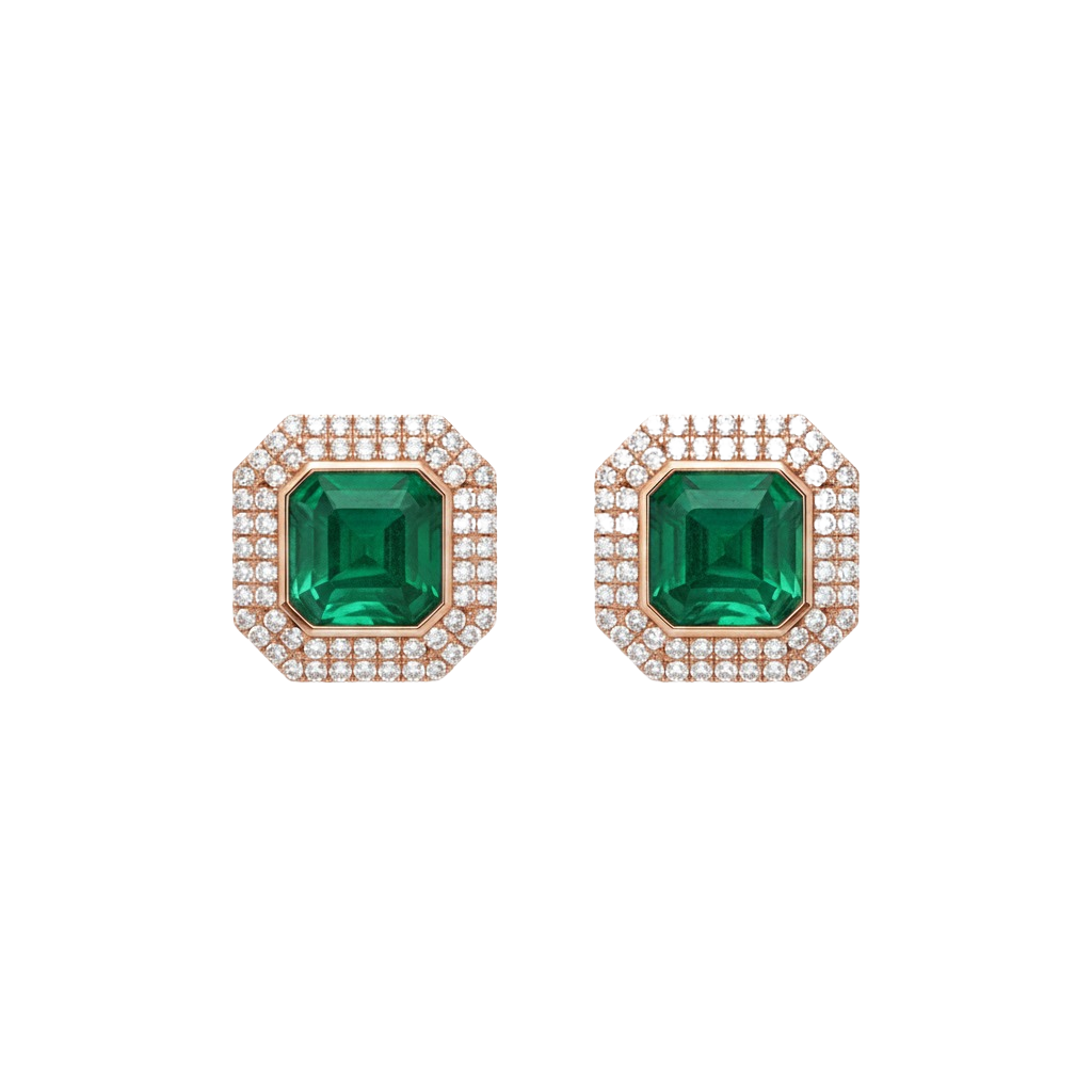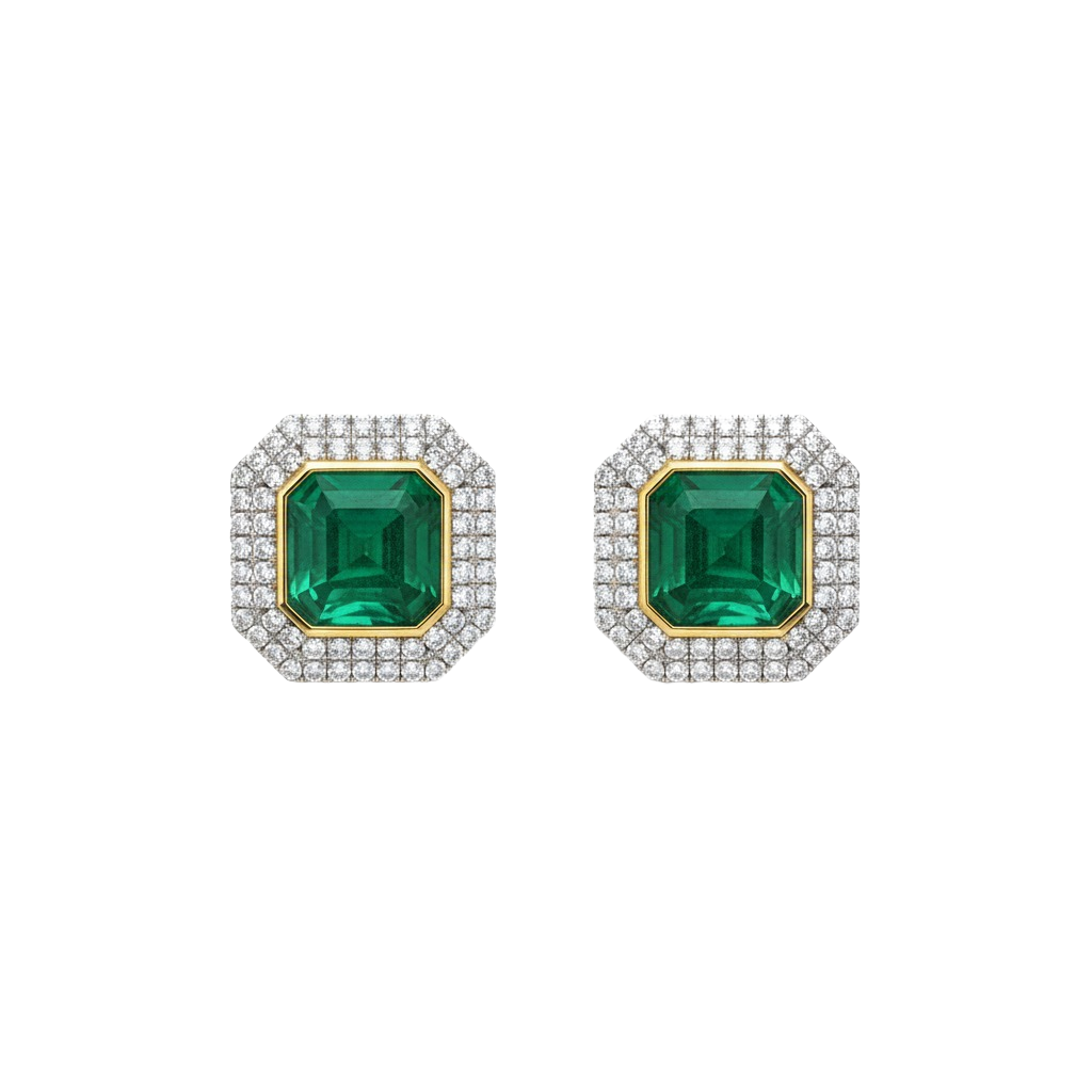 Elegant Octagon cut Natural Emerald Green Stud Earrings with Dazzling Halo