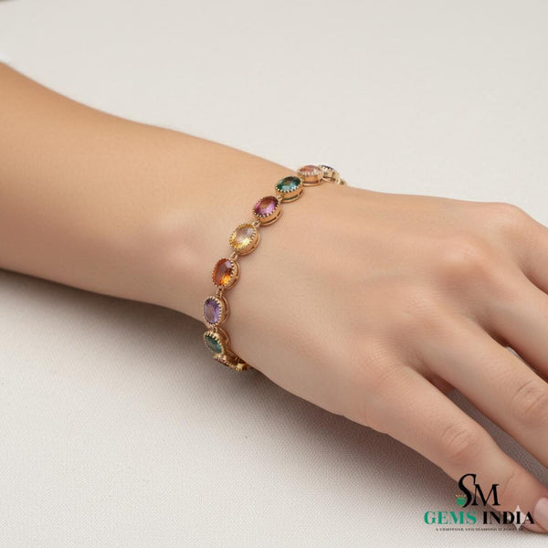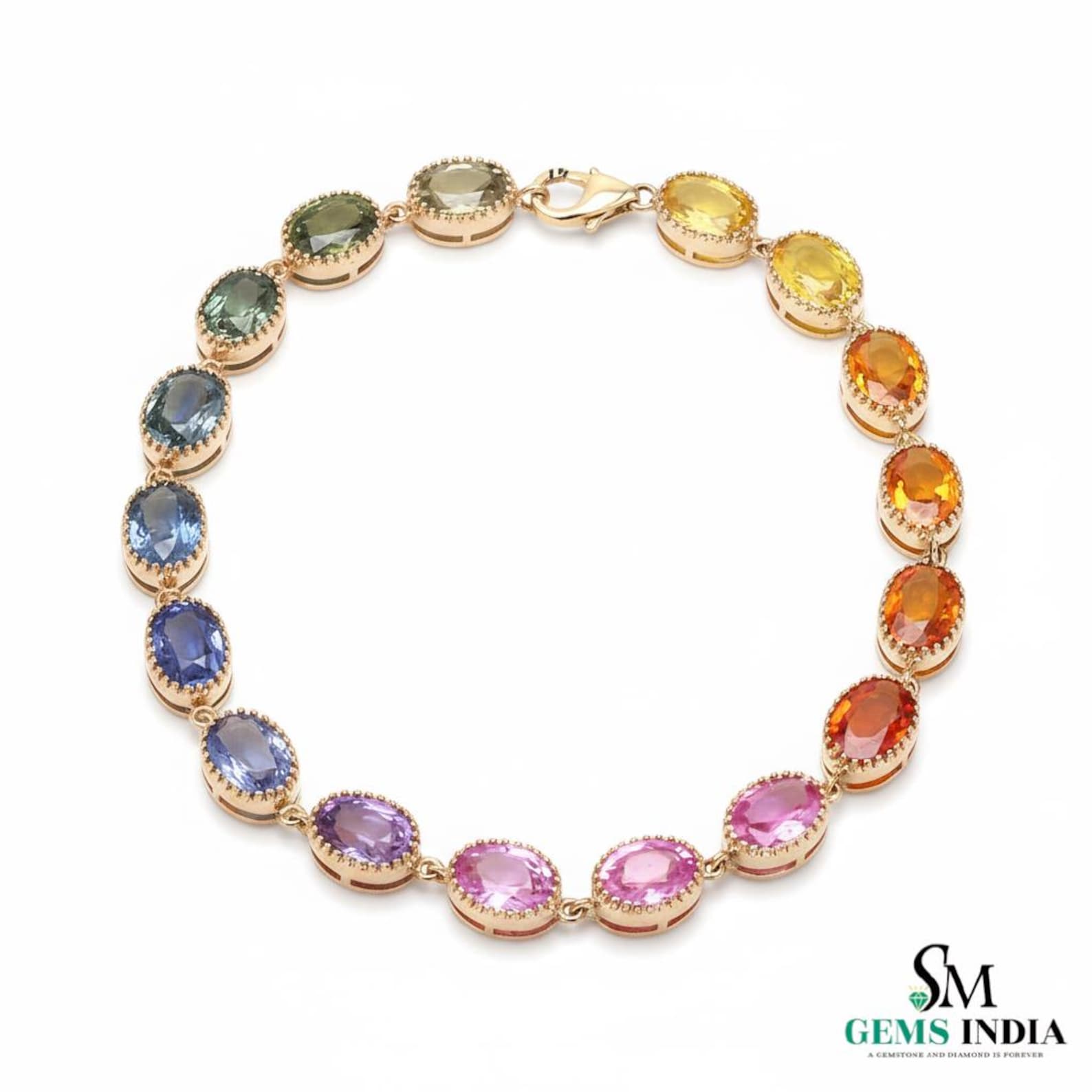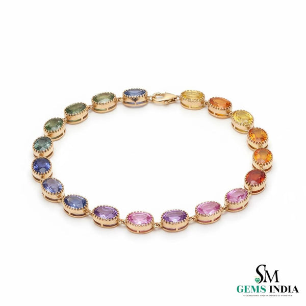 9.50 Carats oval rainbow sapphire tennis link bracelet