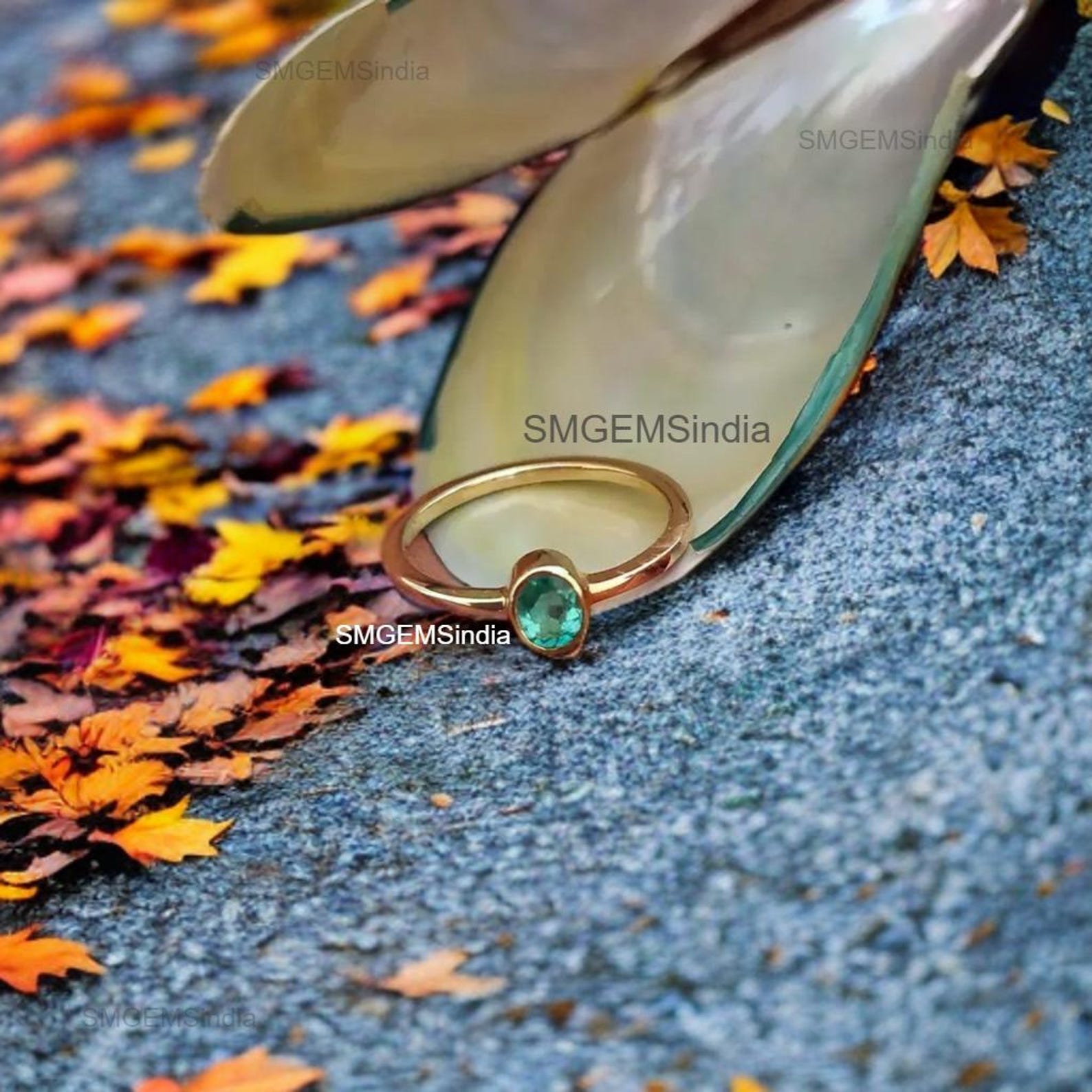 Oval Zambian Emerald Ring Solitaire Ring 14k Solid Gold May Birthstone