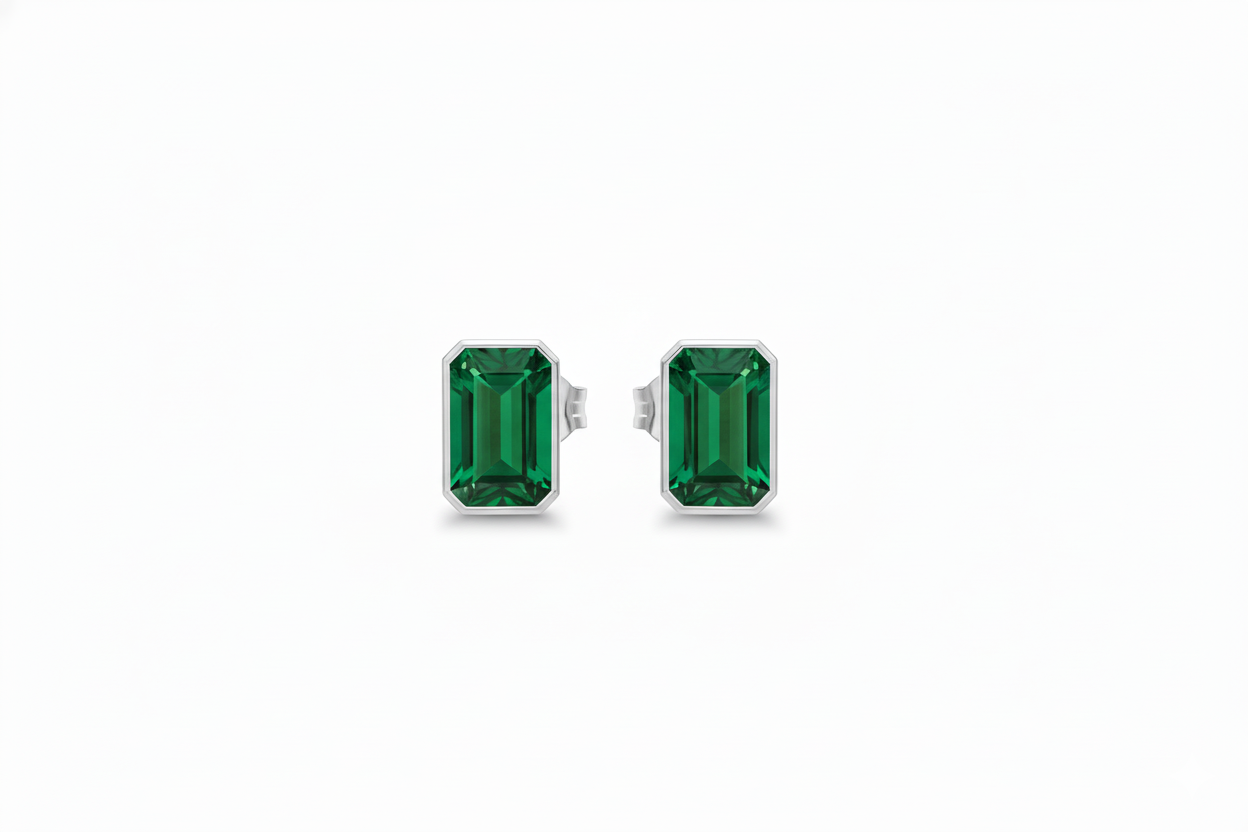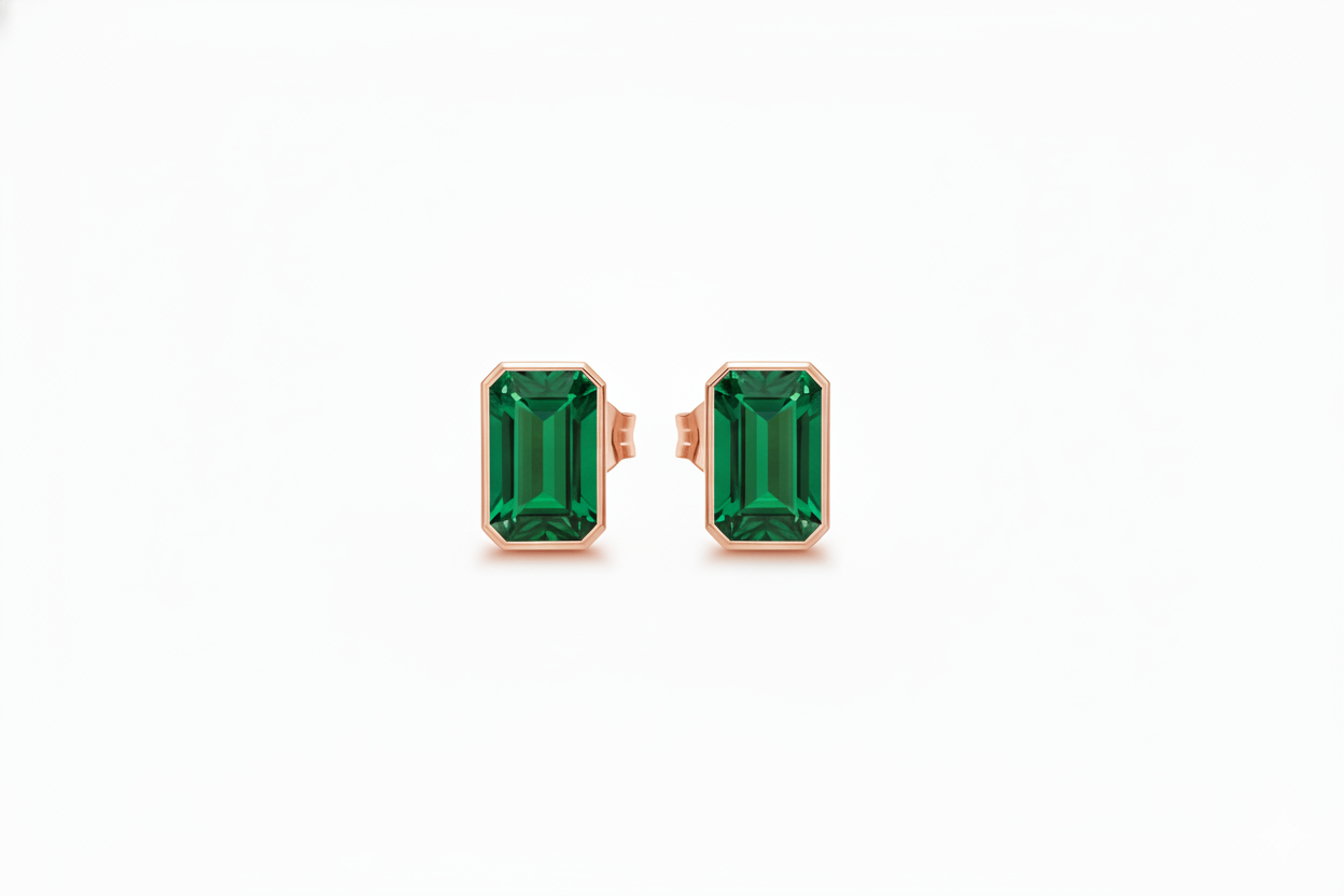 1.50 carat Emerald Cut Natural Emerald Green Stud Earrings Gold Minimalist Style