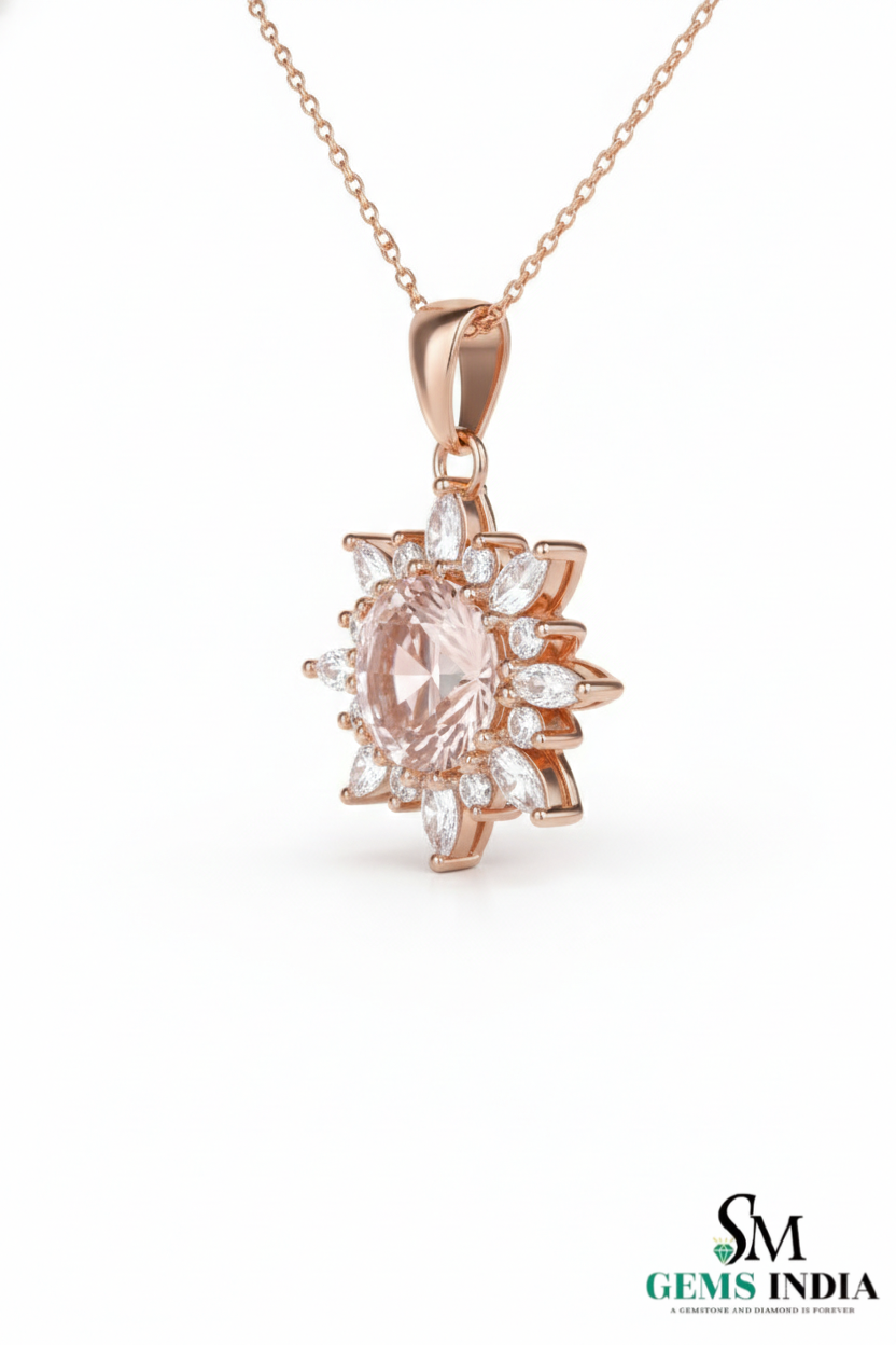 Round Oval Pink Morganite & Diamond Halo Pendant - Morganite Diamond Pendant