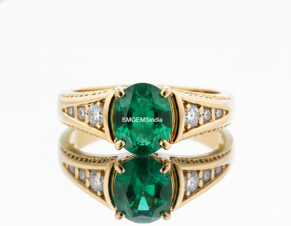 3.20 carat Oval cut Natural Emerald & Diamond Accent Ring with Split Shank Band