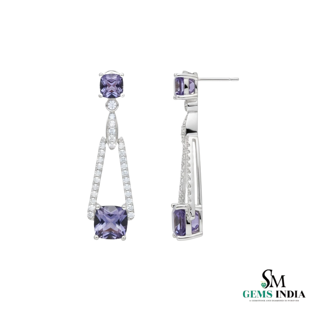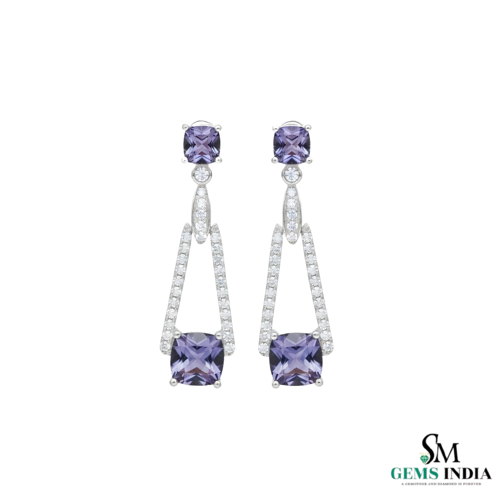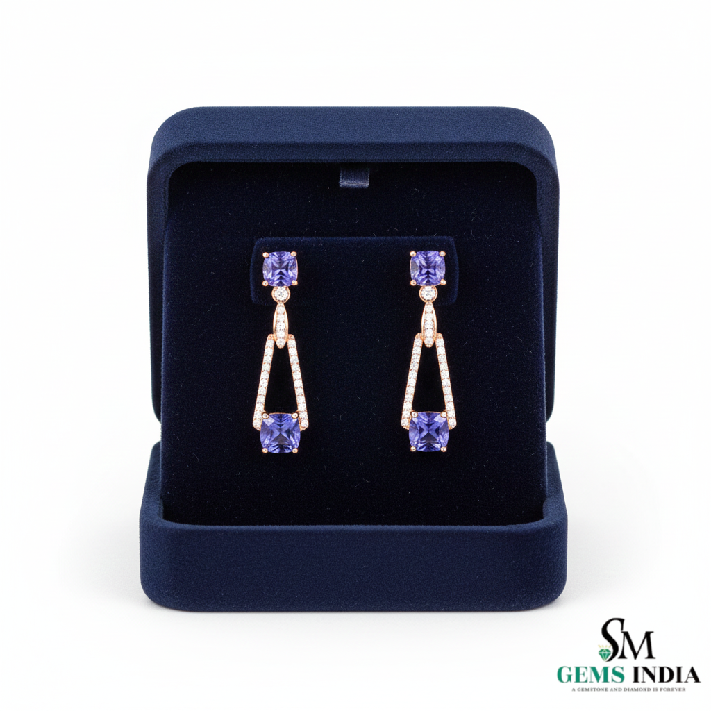 Cushion Cut Tanzanite & Diamond Drop Earring - Luxury Gold Jewelry