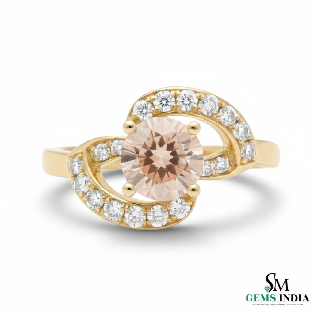 Round Morganite & Diamond Swirl Ring – Round cut Morganite ring