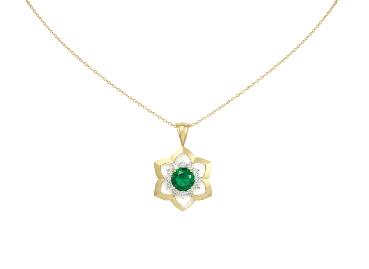 Round Natural Emerald Blossom Pendant Necklace in Gold Elegant Floral Design Jewelry Gift