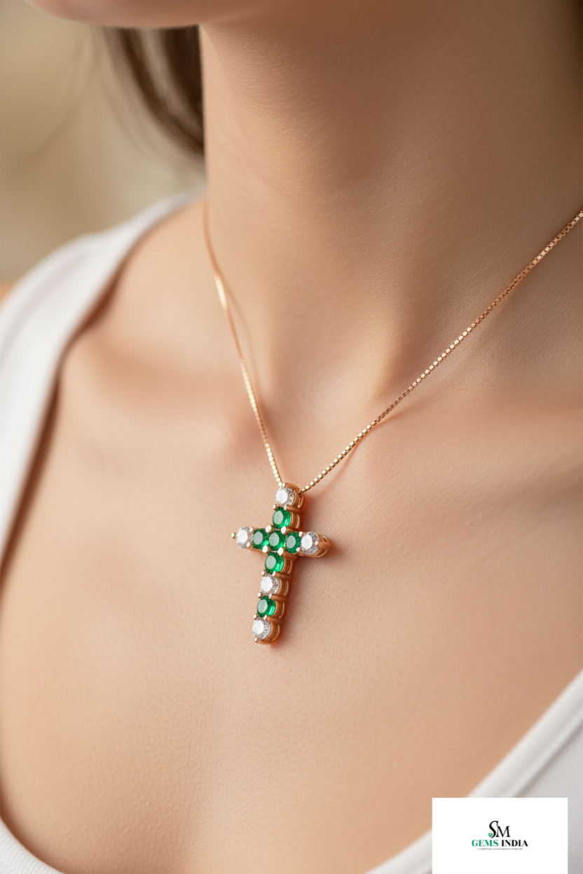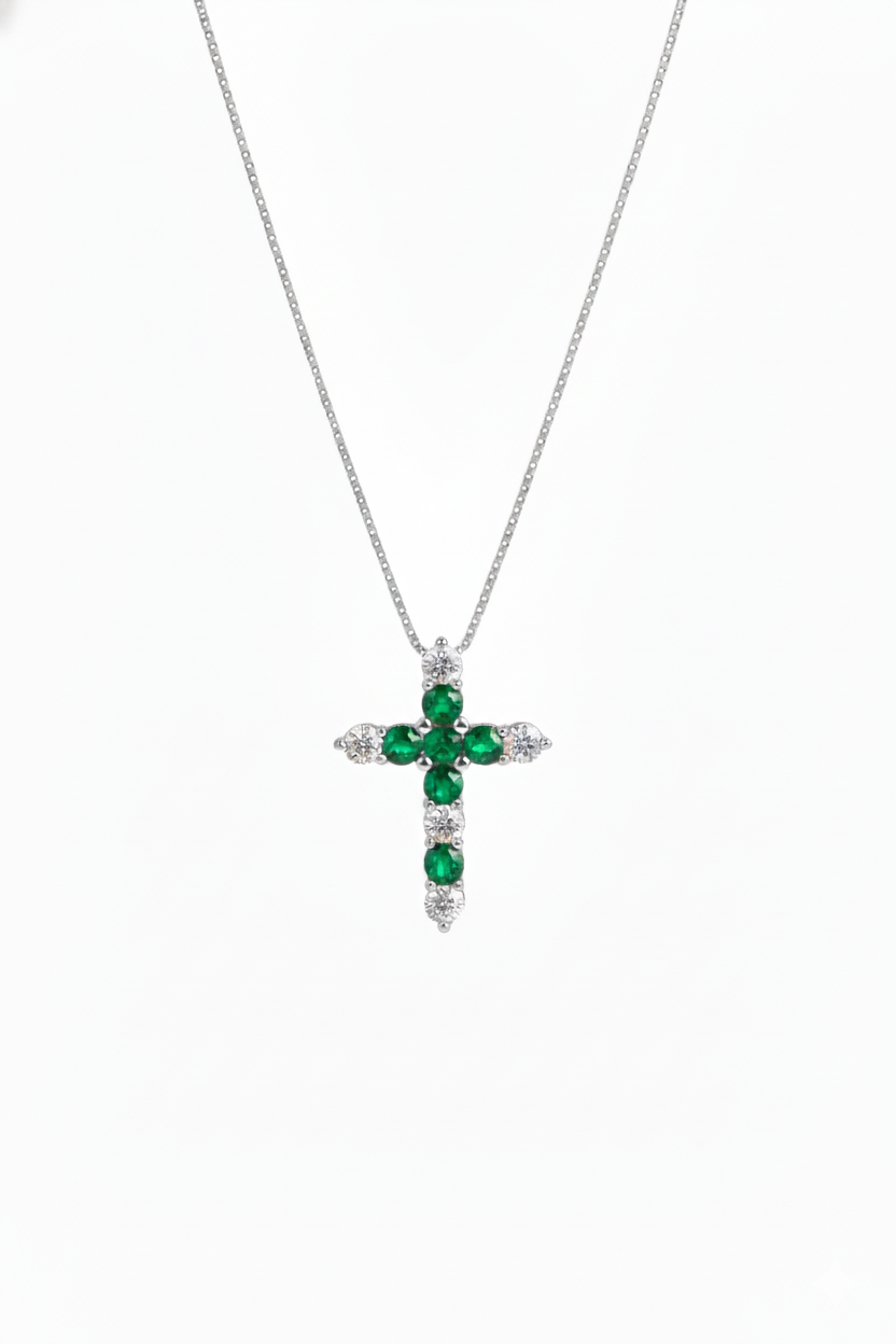 Elegant Emerald and Diamond Faith Cross Pendant for Women Symbolic Fine Jewelry Gift