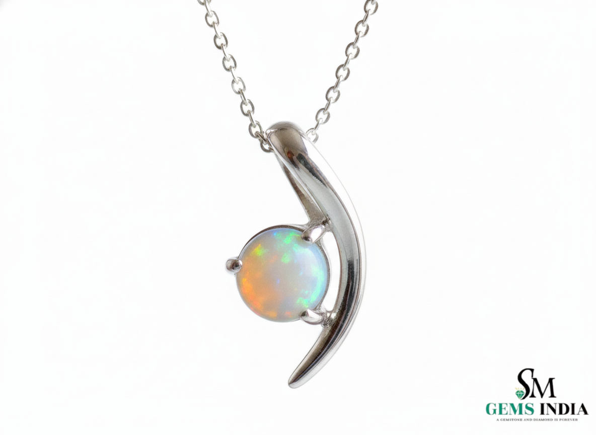 Round Opal Birthstone Crescent Pendant for Women