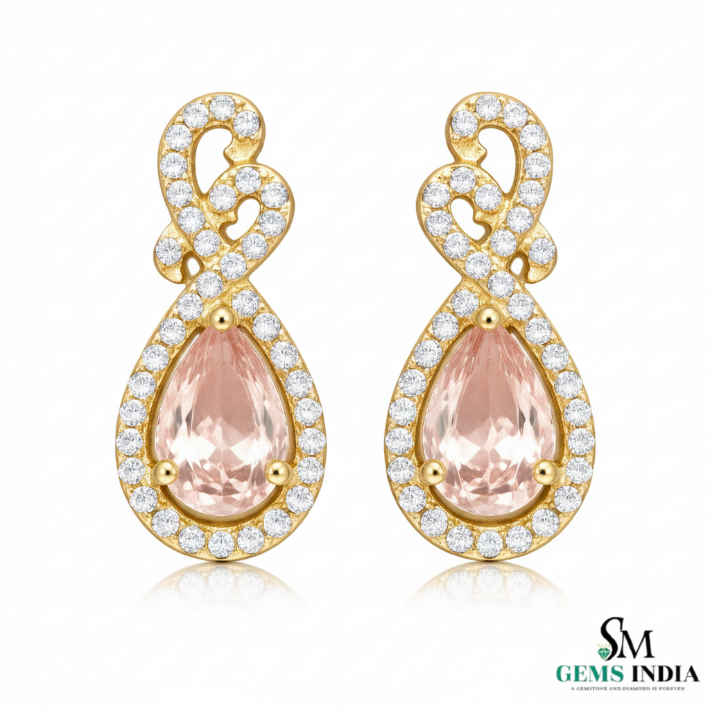 Elegant Pear Morganite Diamond Drop Earrings - Fine Jewelry Earrings