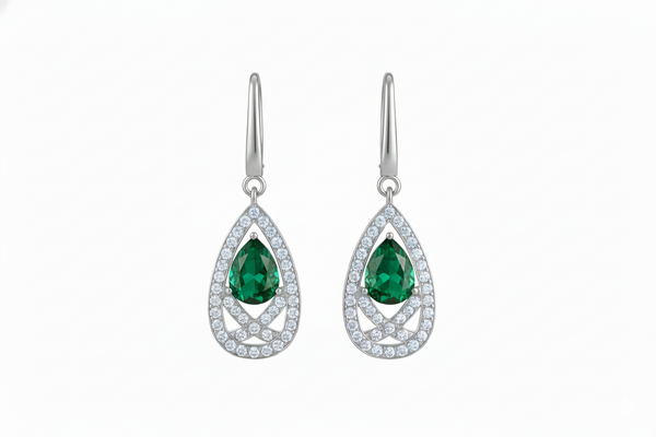 Luxury Natural Emerald Teardrop Earrings with Diamond Border 14K Gold
