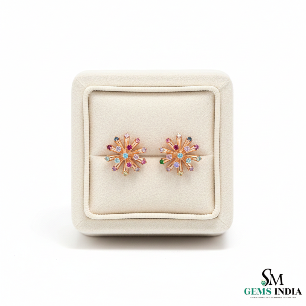 Starburst Round Multi Stone Stud Earrings – Fine Gold Jewelry