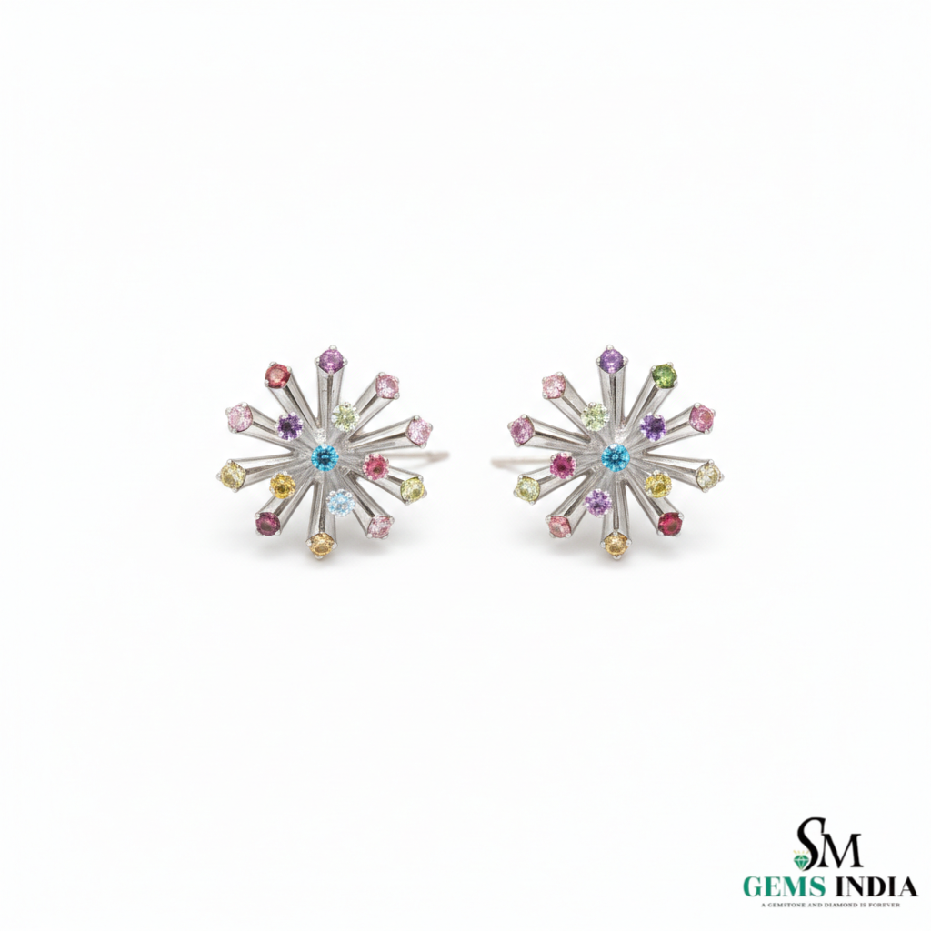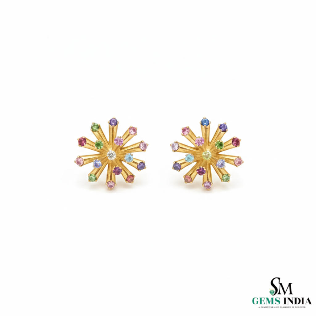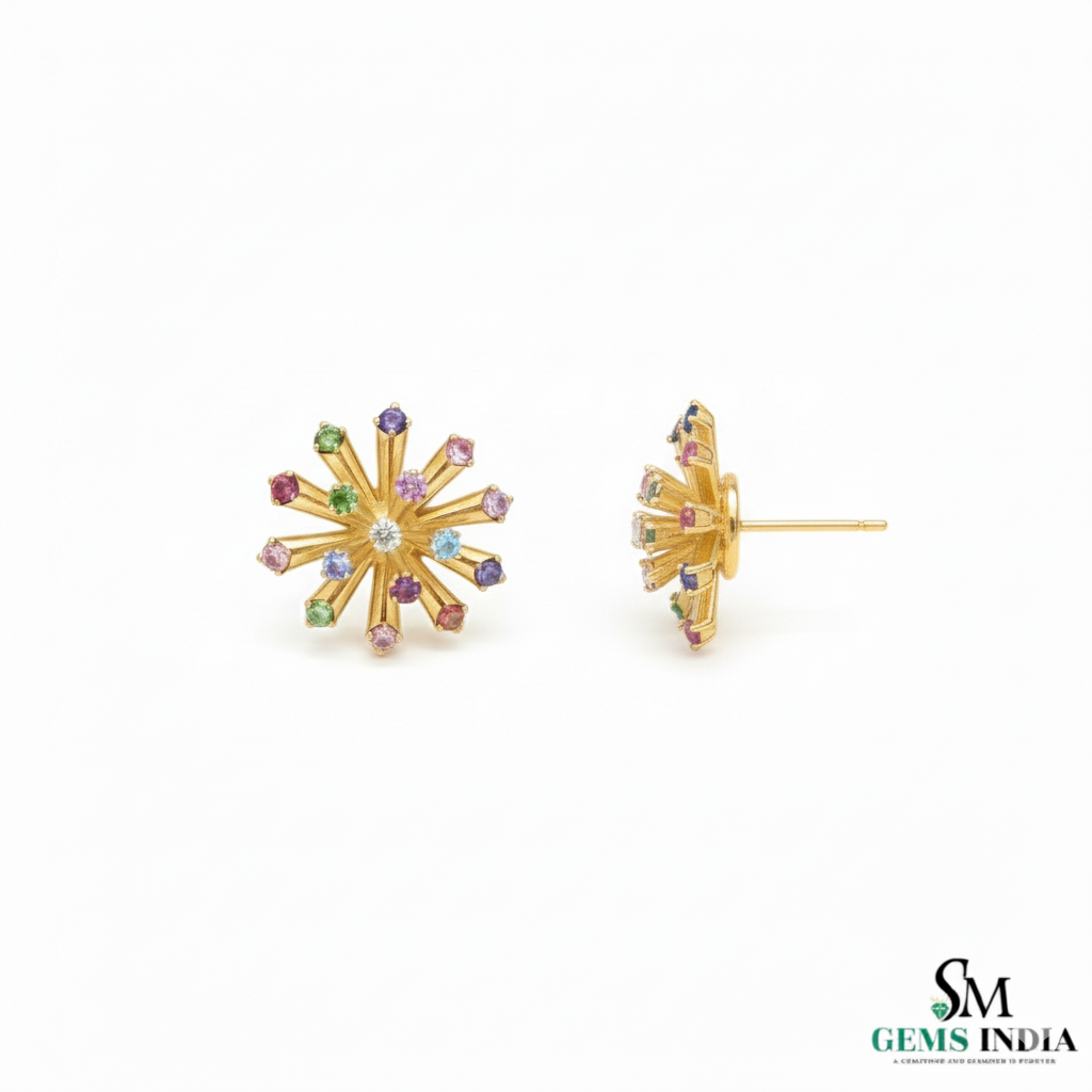 Starburst RoundMulti Stone Stud Earrings – Fine Gold Jewelry