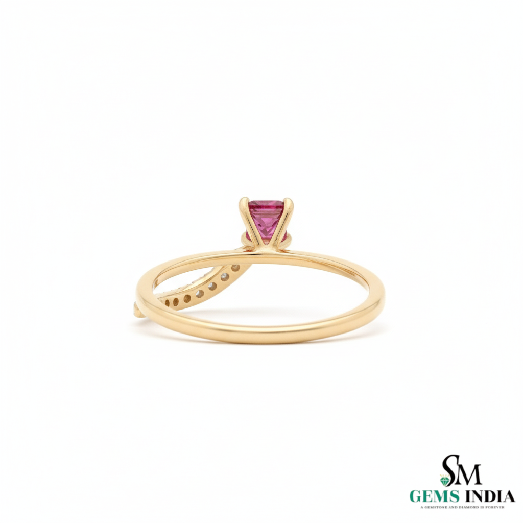 Princess Cut Natural Ruby Ring with Diamond Twist Band in 14k Gold