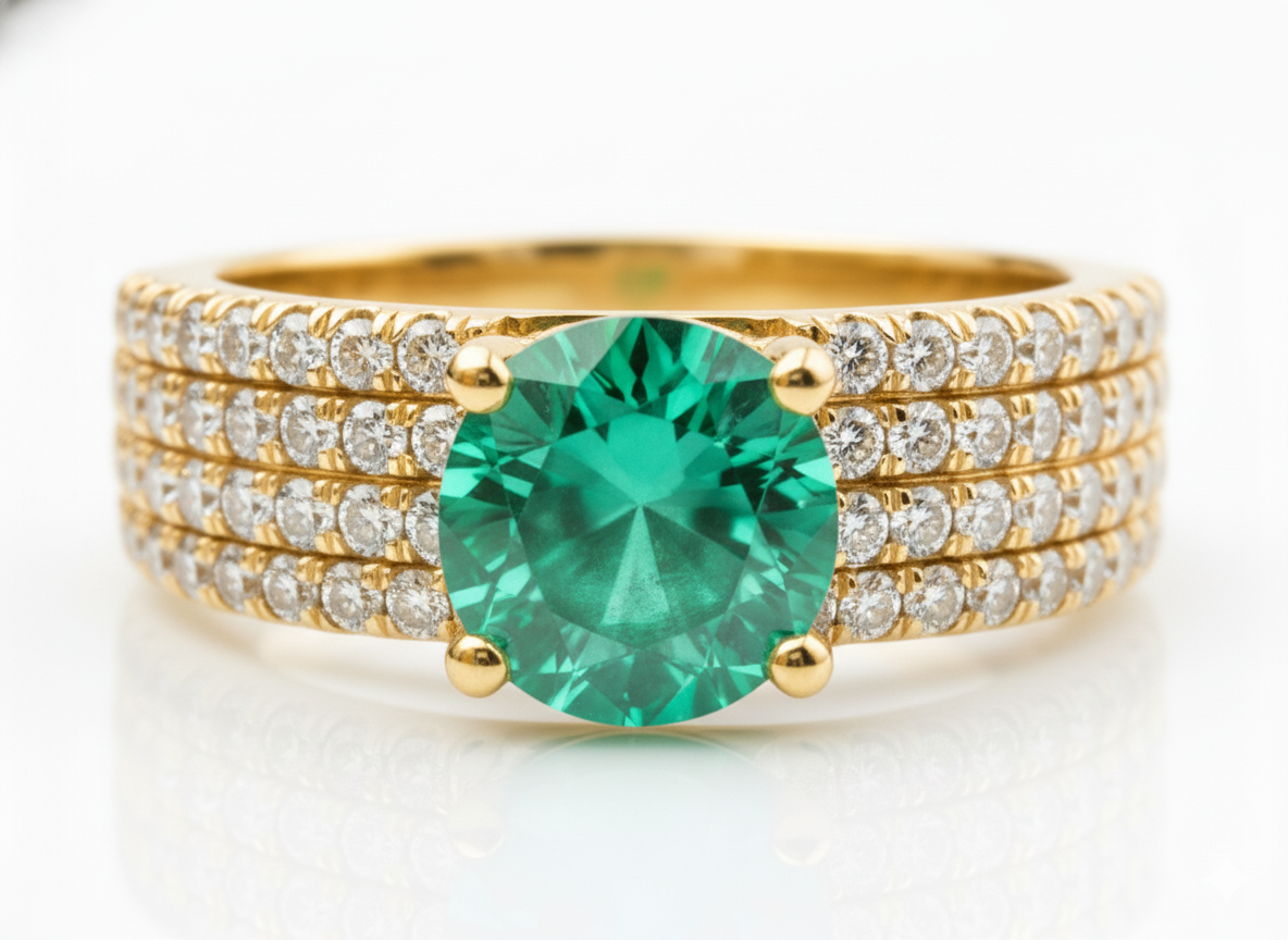 We specialize in handcrafted gemstone jewellery, including emerald and diamond collections, rings, necklaces, earrings, and custom designs.