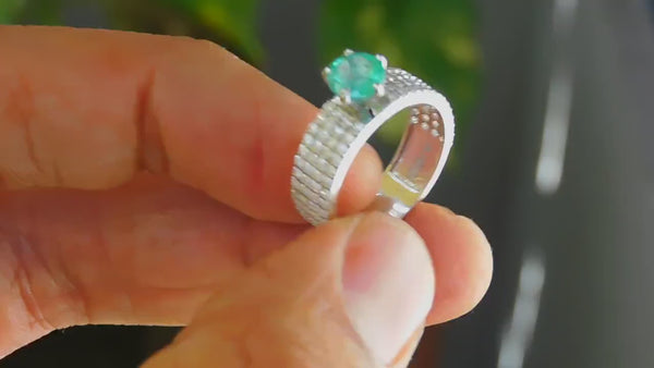 Round Natural Emerald and Diamond Multi-Row Band Engagement Ring in 14K Gold Handmade Fine Gold Jewelry