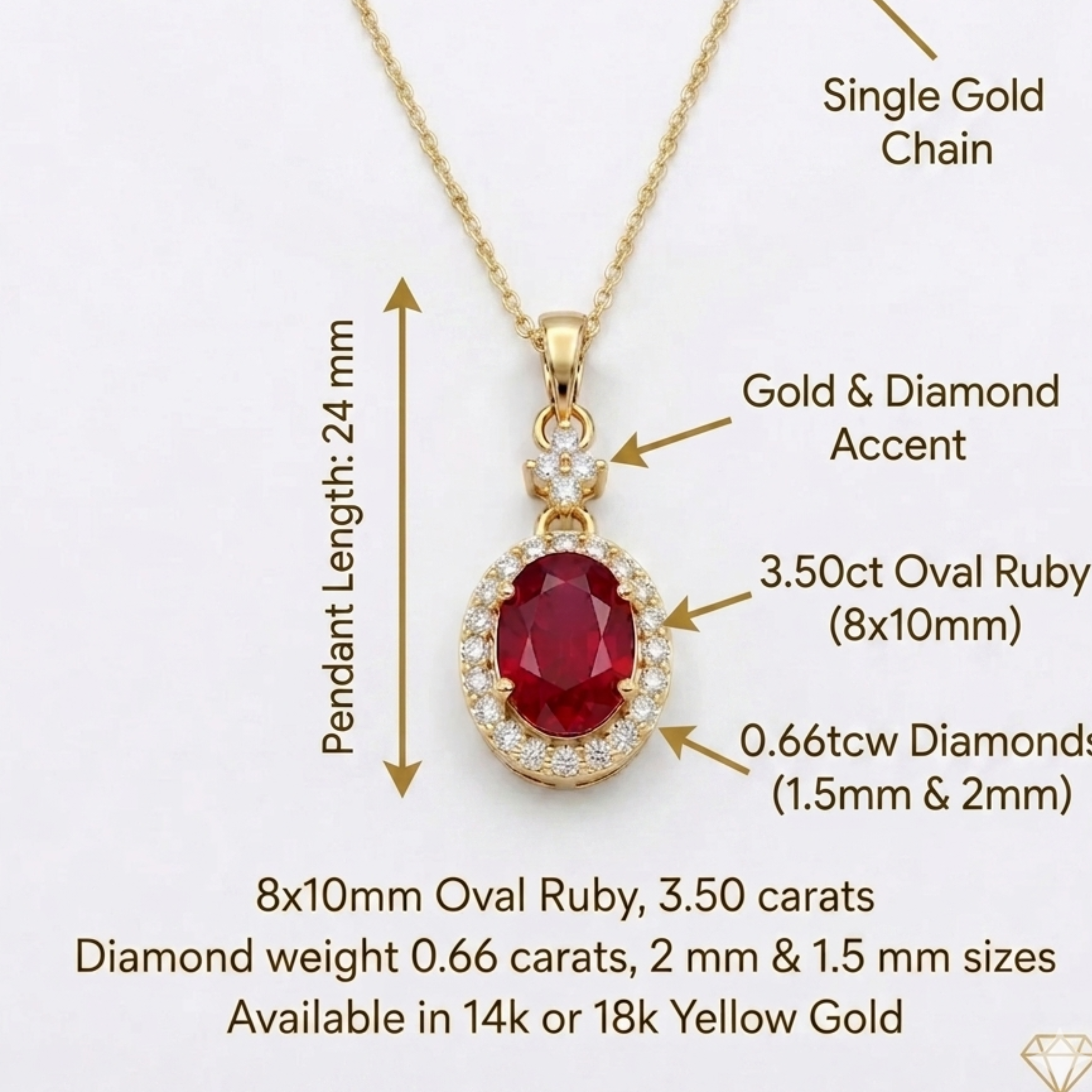Oval Cut Ruby & Diamond Halo Pendant in 14K Gold